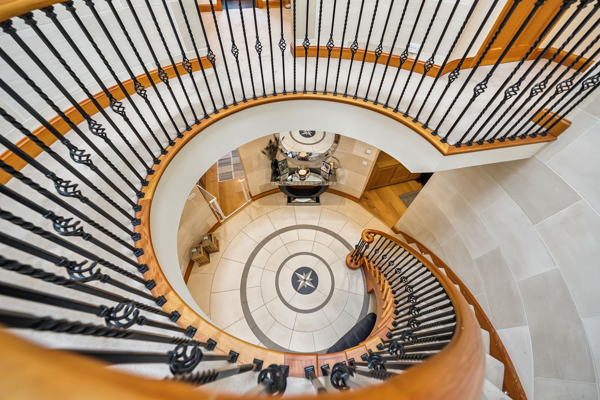 Turreted reception hall with spiral staircase; superb living / dining / kitchen with direct access to patio; dining room; formal lounge with fireplace and windows on three aspects; a spacious conservatory; large utility room; separate boiler room; cinema room; large gymnasium with W/C off; pool room with phenomenal vaulted ceiling, sauna, changing room and W/C. From the ground level there is also access to the large integral three-car garage via a cloakroom with W/C.