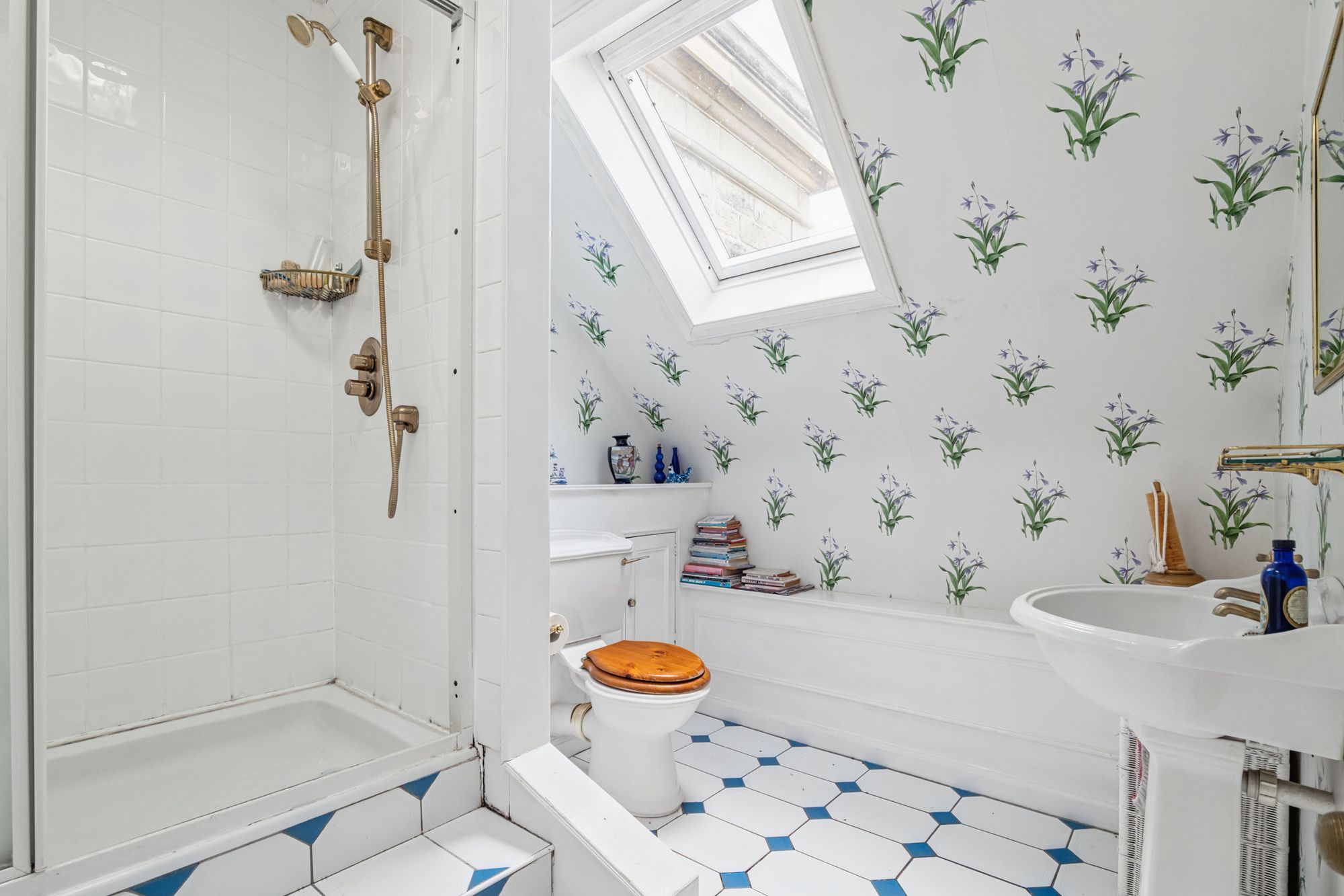 A further internal staircase brings you up to the upper level that features a hugely impressive open space with large skylight, likely the original Victorian nursery. It now provides an excellent, versatile opportunity to use as a bedroom, or a more creative space such as artist studio or exceptional home office space. It boasts an additional room off to the side (likely once for the nanny), as well as ample storage within the eves. This top floor also features additional double bedroom and separate shower room.