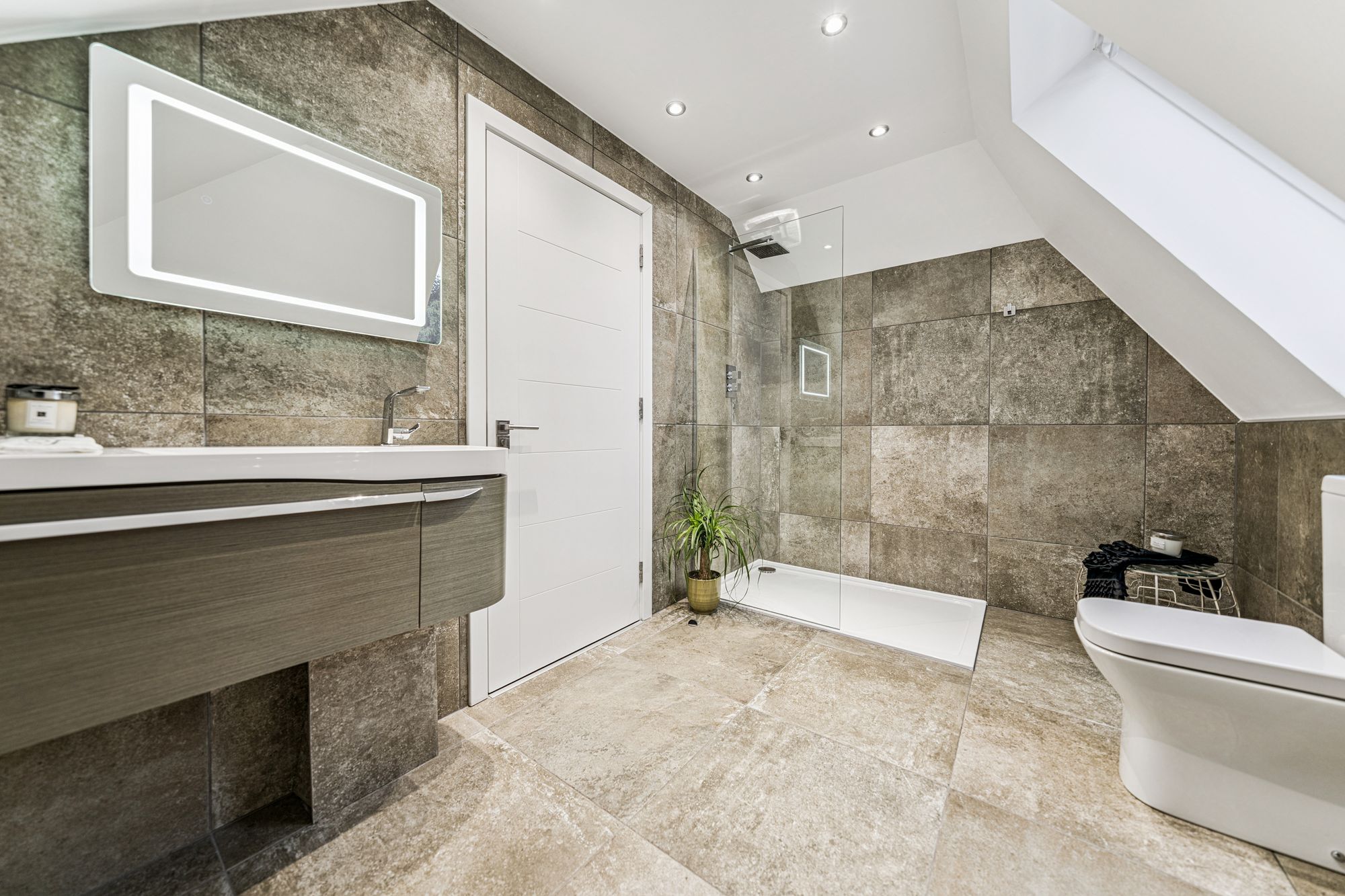 The upper level of the property has a central landing with an enormous storage cupboard and access to four well proportioned bedrooms. The principal bedroom features a walk in wardrobe and access to a stunning ensuite shower room which is beautifully tiled with a walk in shower, WC and wash hand basin with storage beneath. Completing the accommodation is the family bathroom which comprises of modern fixtures and fittings.