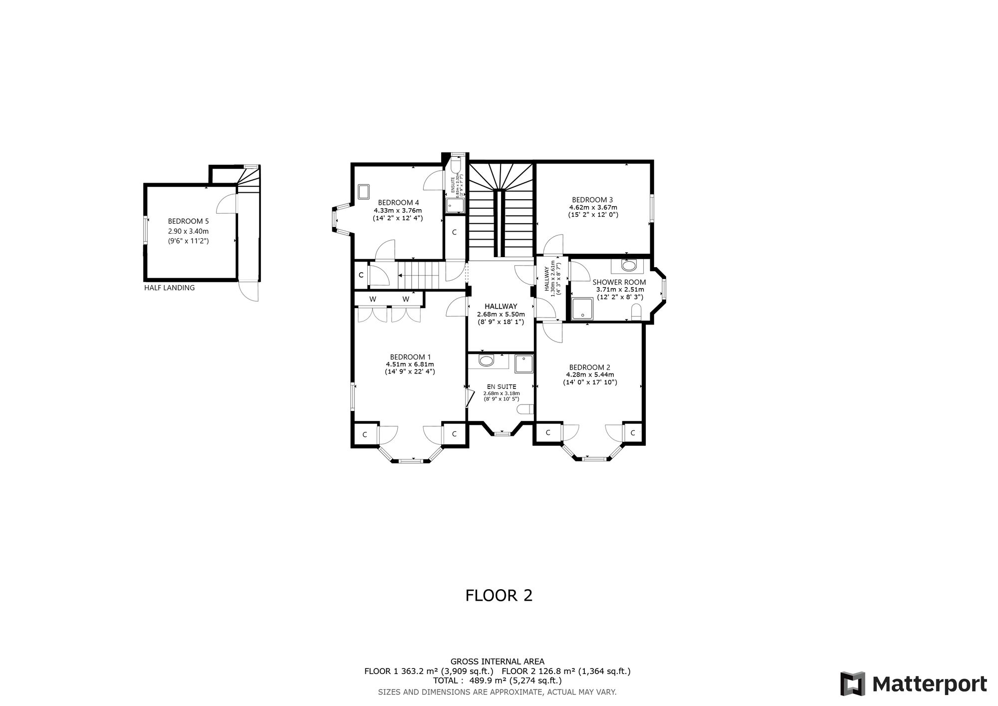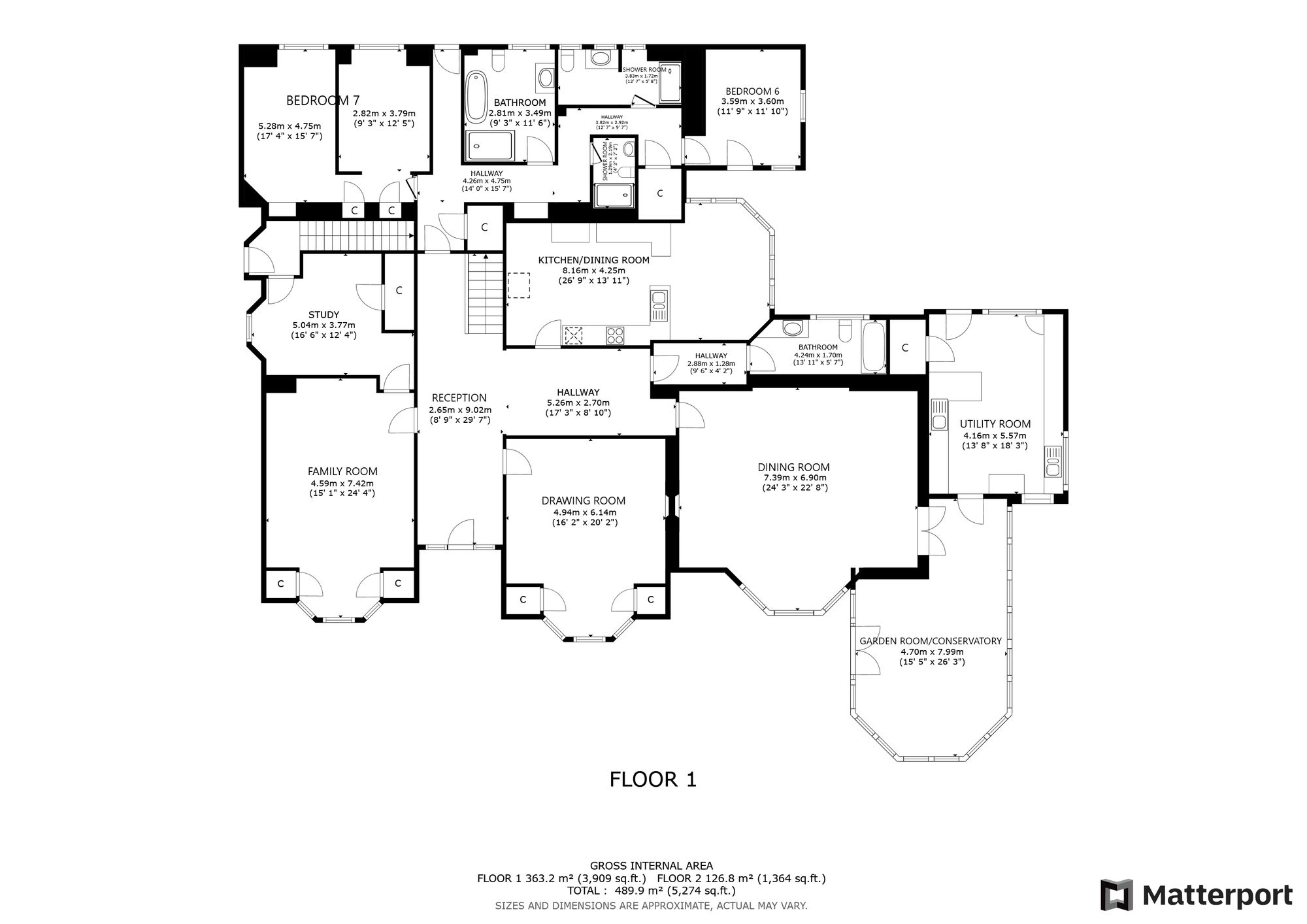 Moving to the upstairs accommodation, a staircase from the reception hall leads through to a large landing, which in turn accesses each of the main bedrooms on this floor. The master bedroom is a sizeable double room with a bay window and it enjoys its own luxuriously appointed and refitted ensuite shower room, which has a shower enclosure, wc and wash hand basin. There are three further double bedrooms on this floor, one of which is a bay windowed room to the front and the two remaining bedrooms being to the rear (one with ensuite shower room). The family shower room is beautifully refitted and stylish in design with a large shower enclosure, wc and wash hand basin. As mentioned previously, there is a further bedroom on a half landing that can be reached from this floor or from the study on the ground floor level.