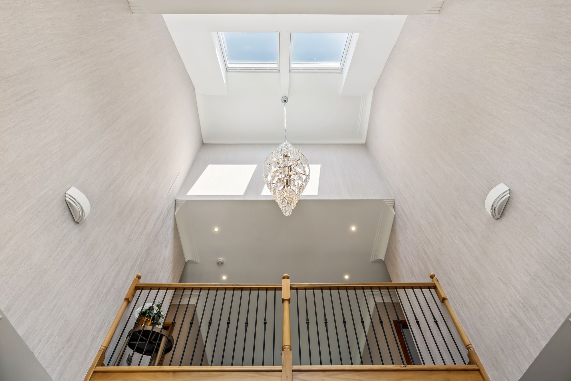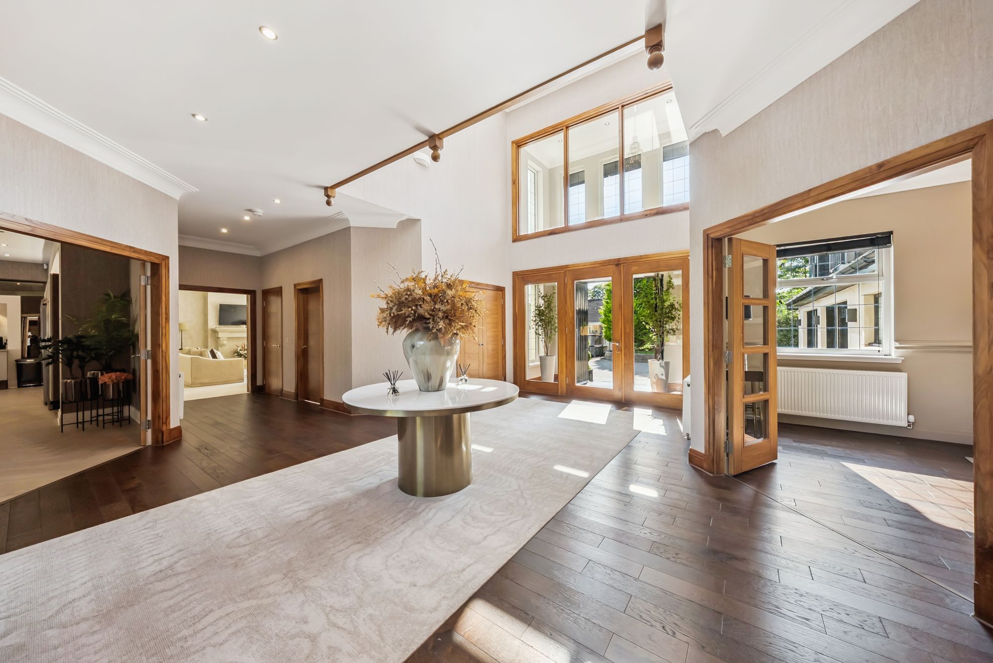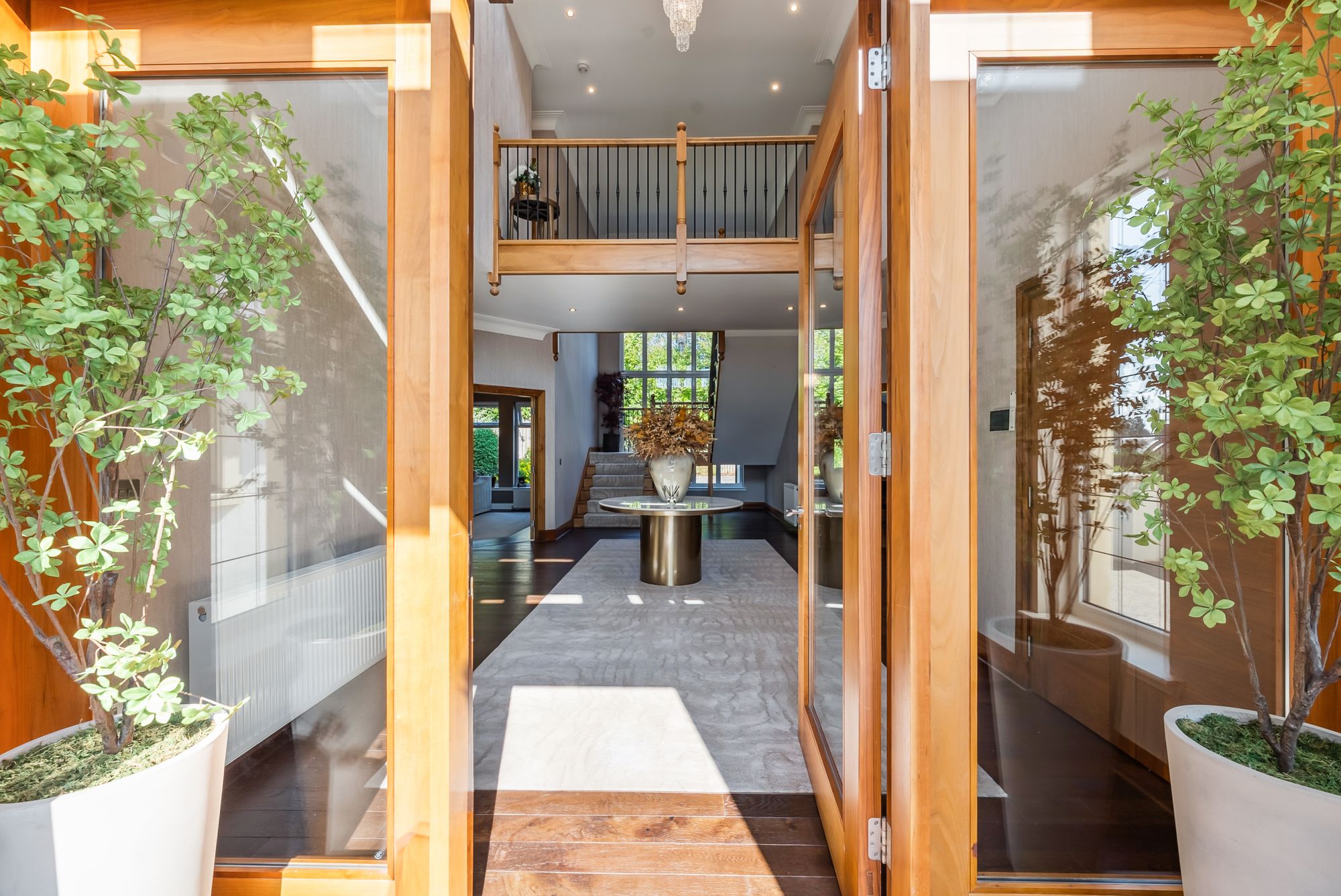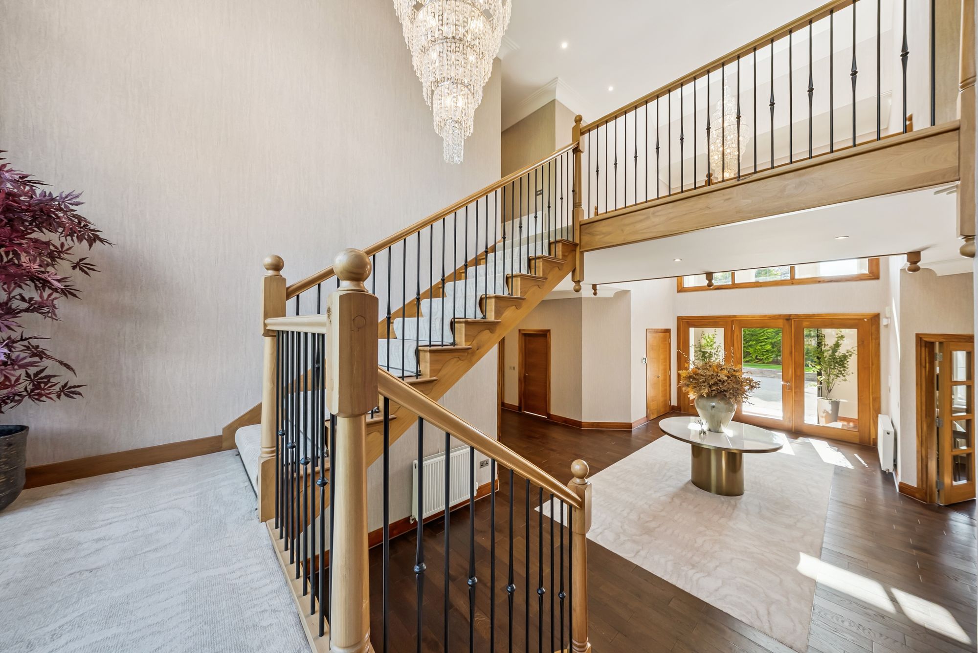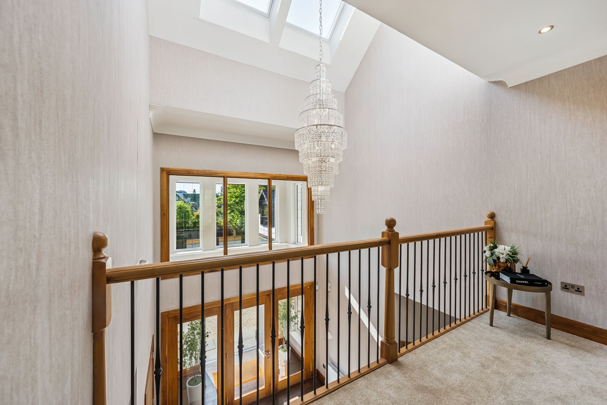 Features worth noting include the imposing double height reception hallway with floor to ceiling cathedral windows to the rear. The gallery above provides a beautiful aspect over the entrance hallway and to the rear gardens. The staircase and surrounds are complemented by American Black Walnut finishing.