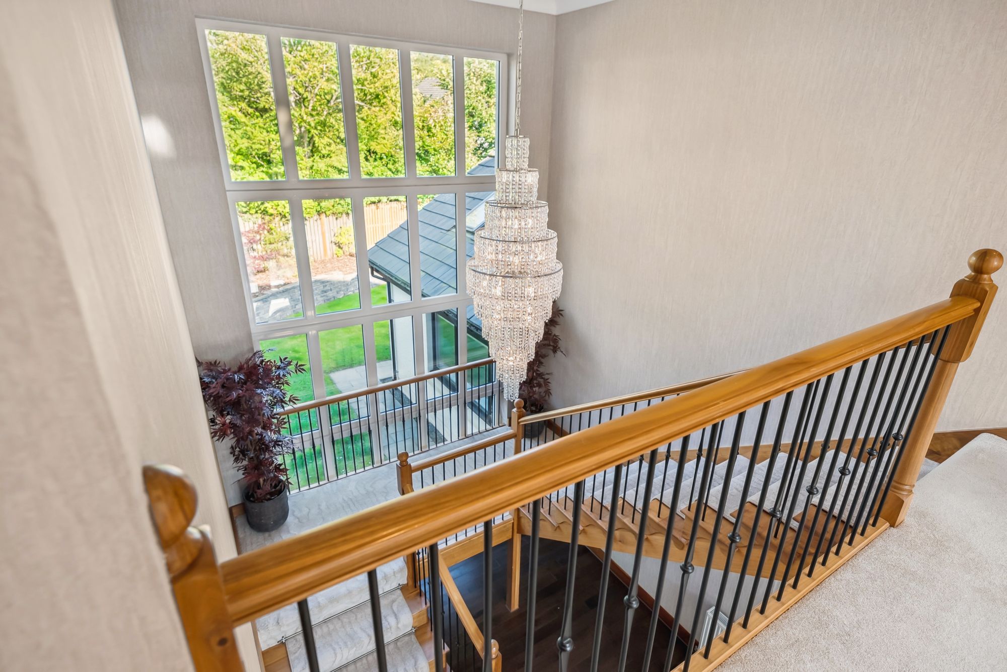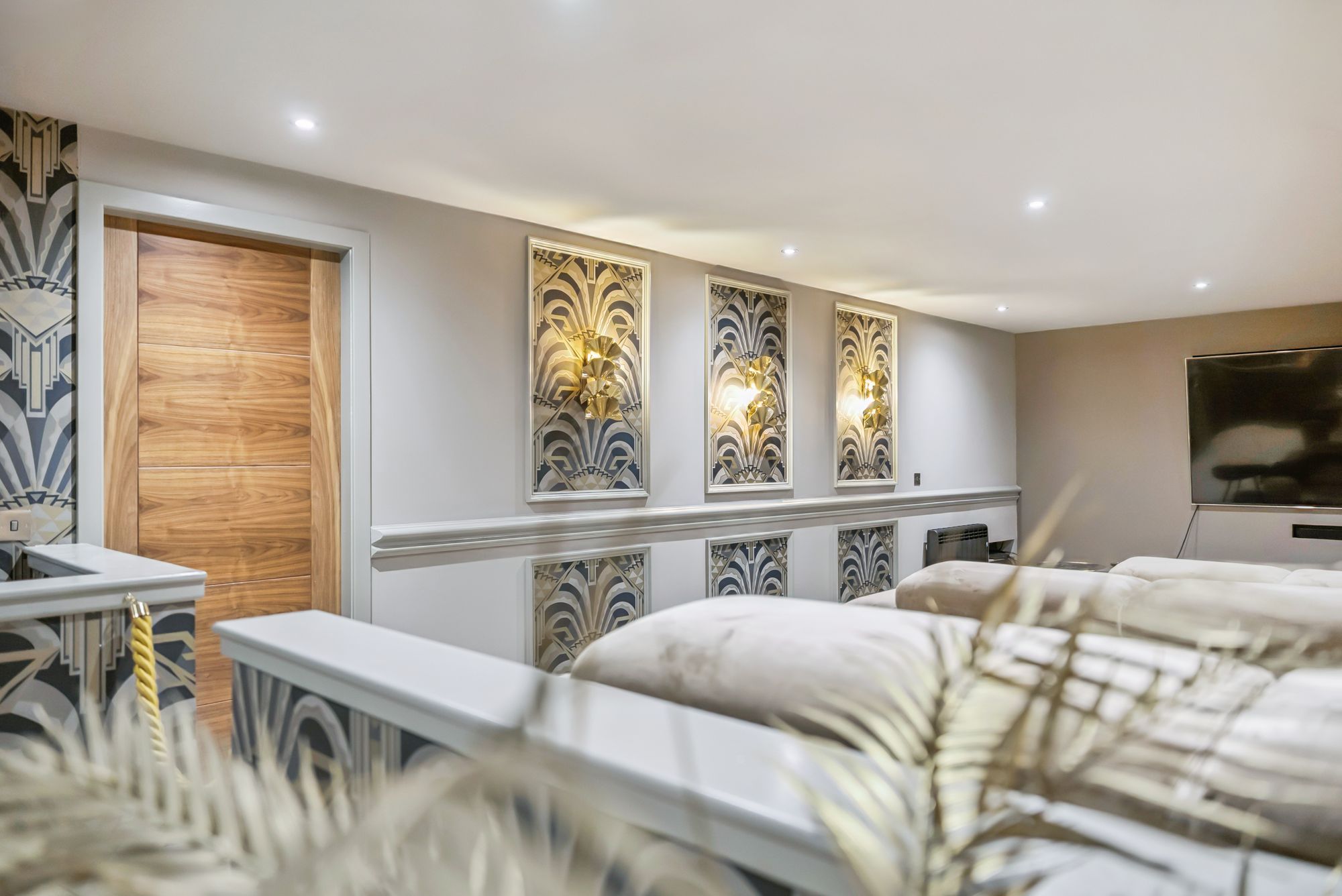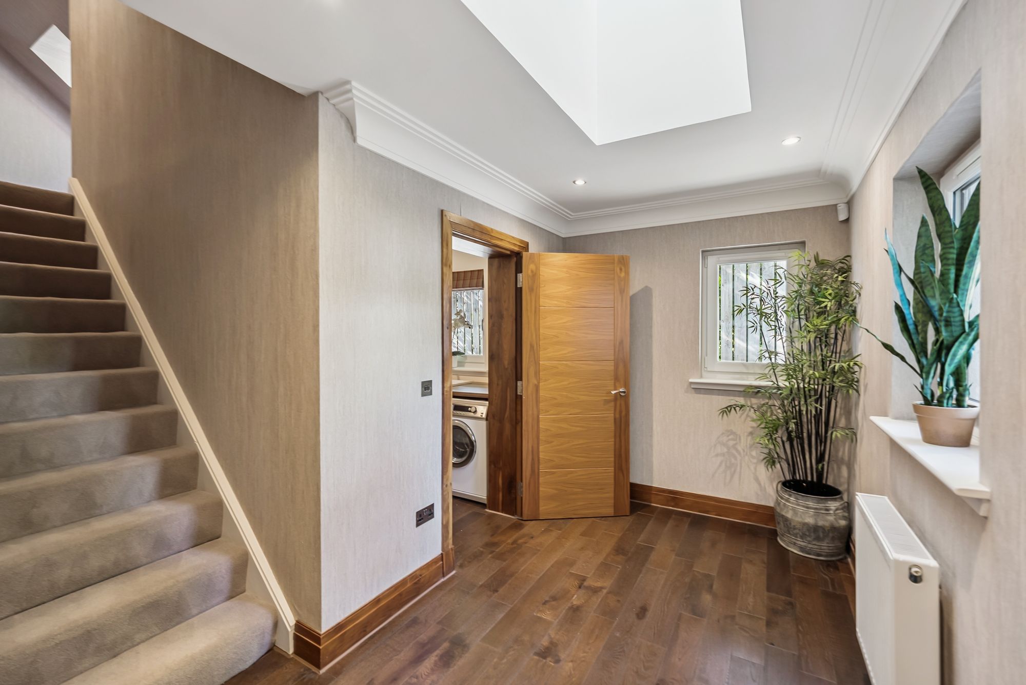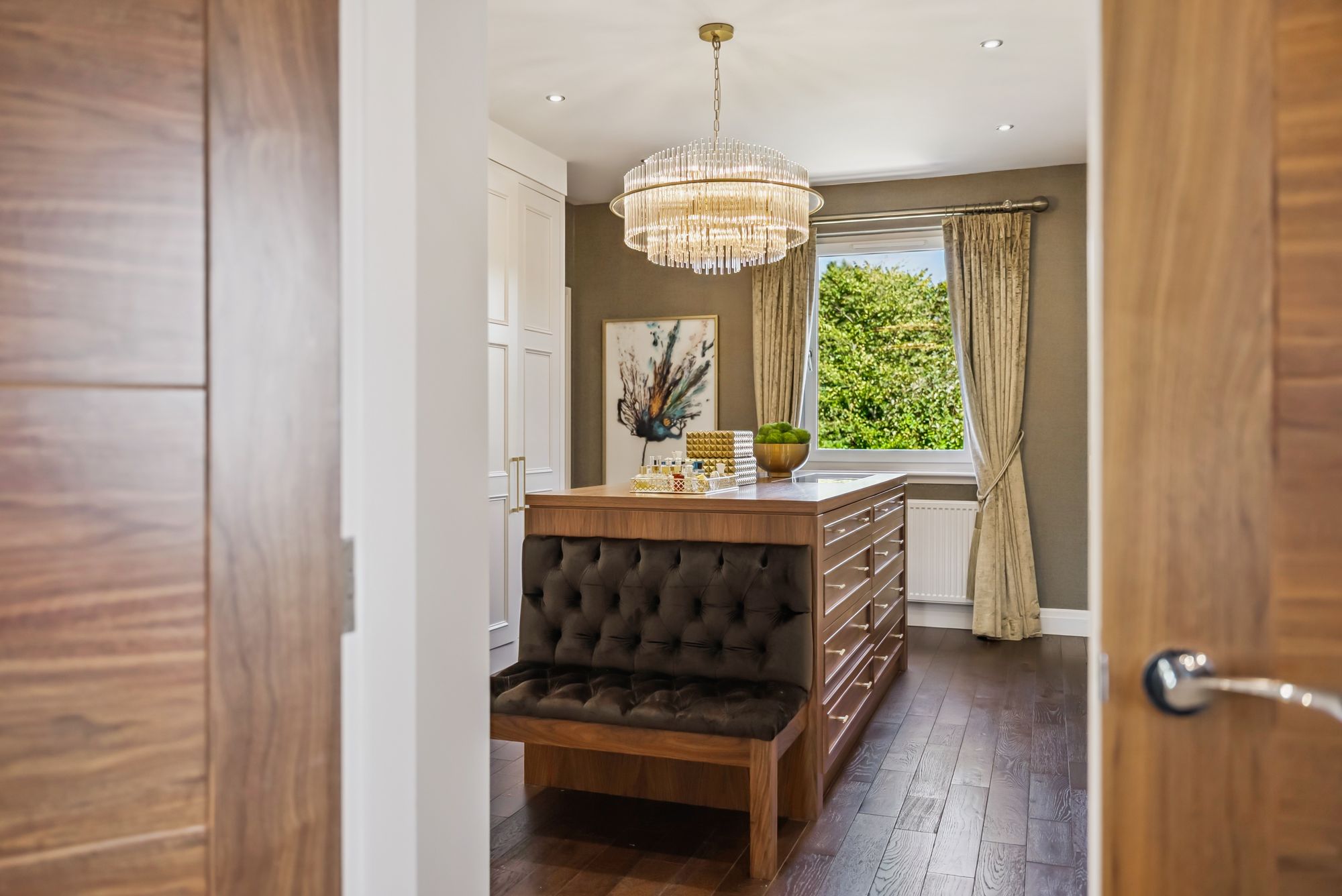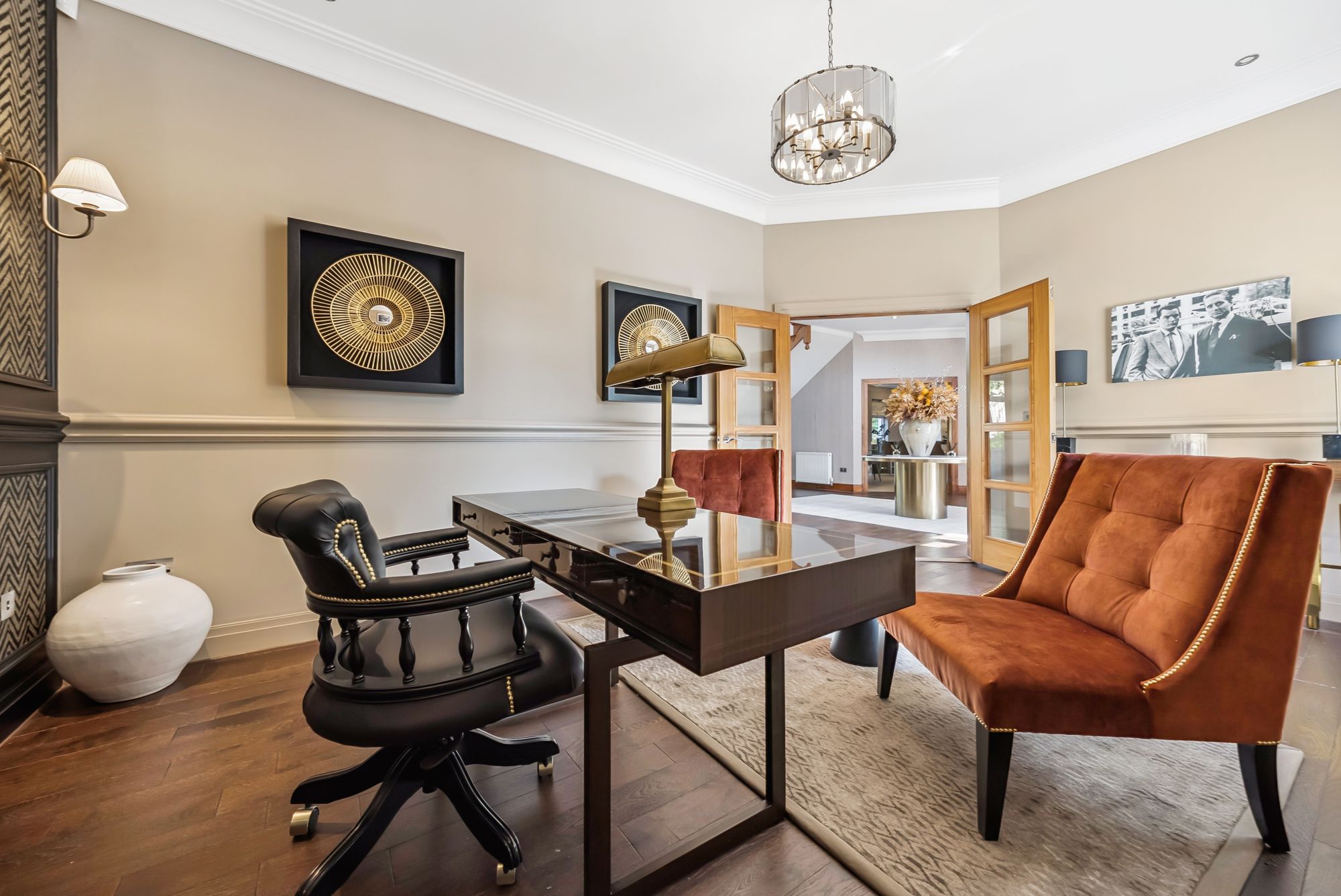 Features worth noting include the imposing double height reception hallway with floor to ceiling cathedral windows to the rear. The gallery above provides a beautiful aspect over the entrance hallway and to the rear gardens. The staircase and surrounds are complemented by American Black Walnut finishing.