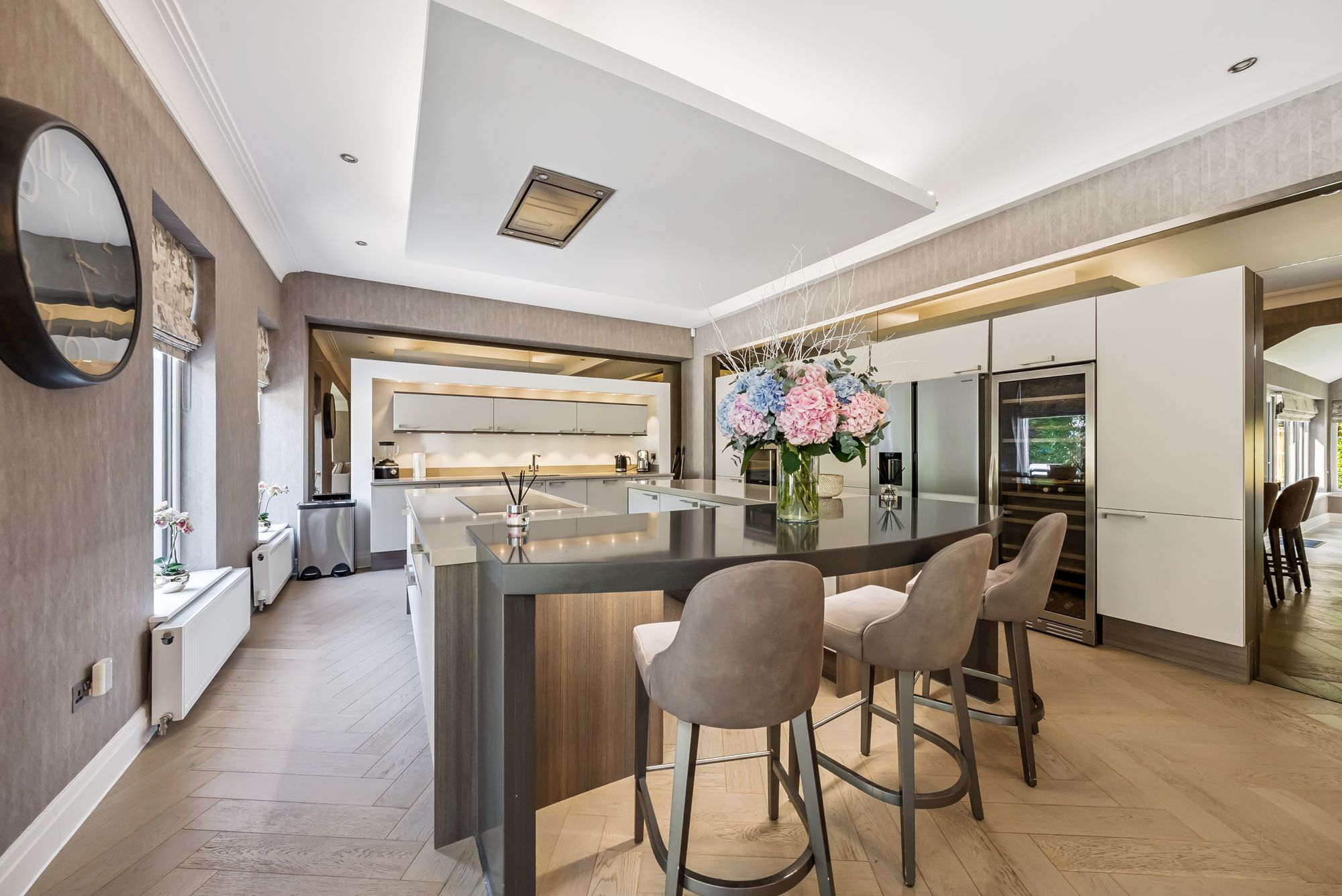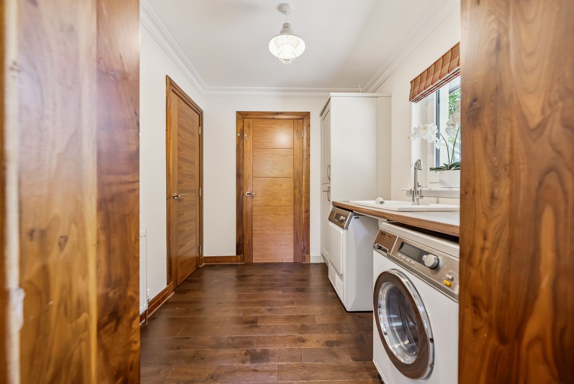 Beautifully finished kitchen designed by J. S. Geddes which is open to include dining and family area, spacious utility room with separate, further storage room beyond