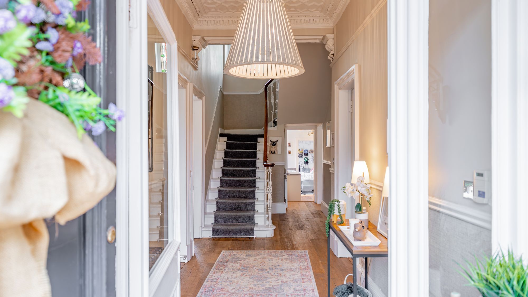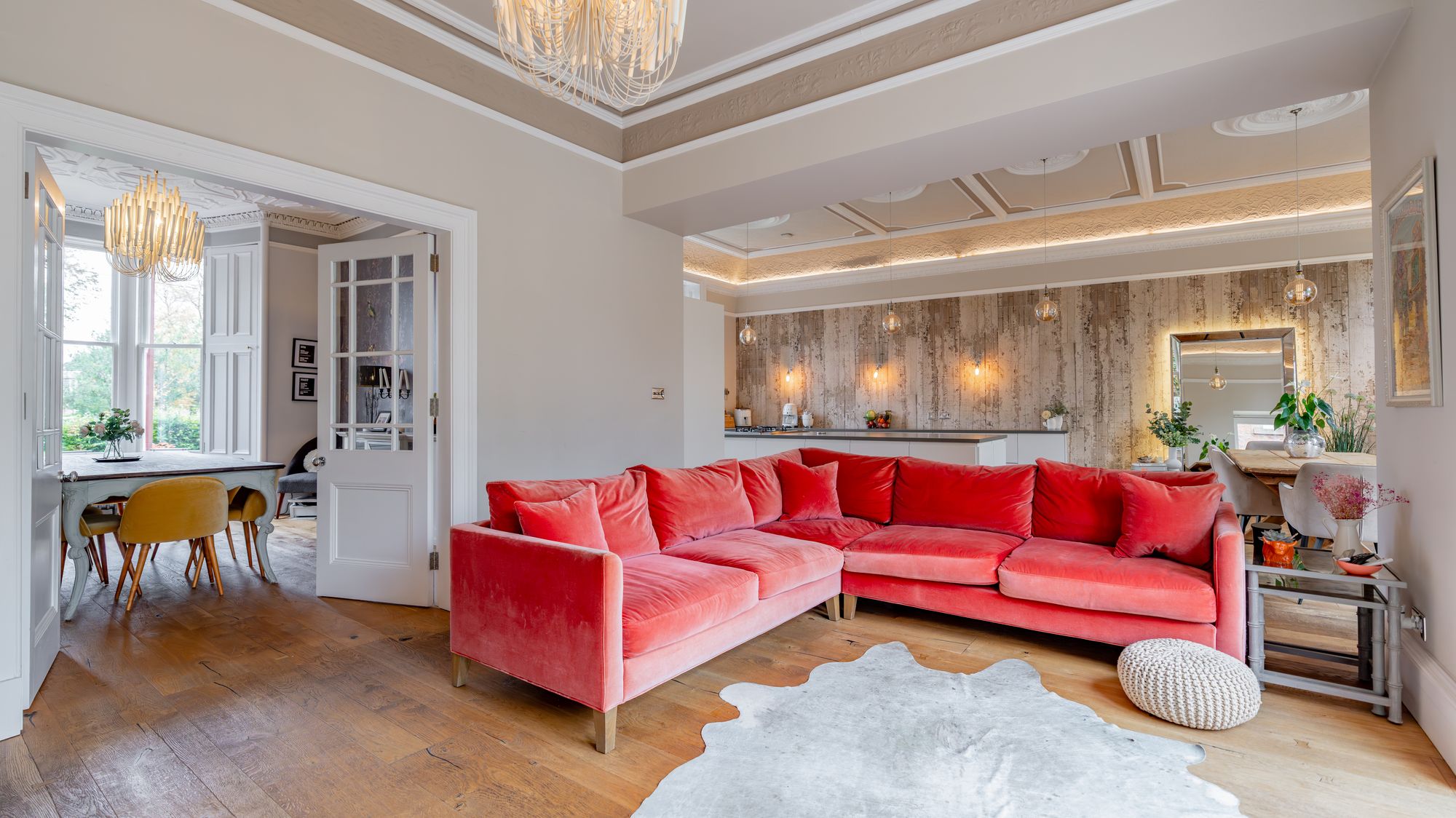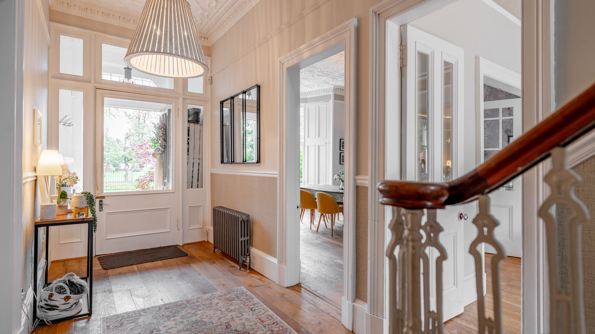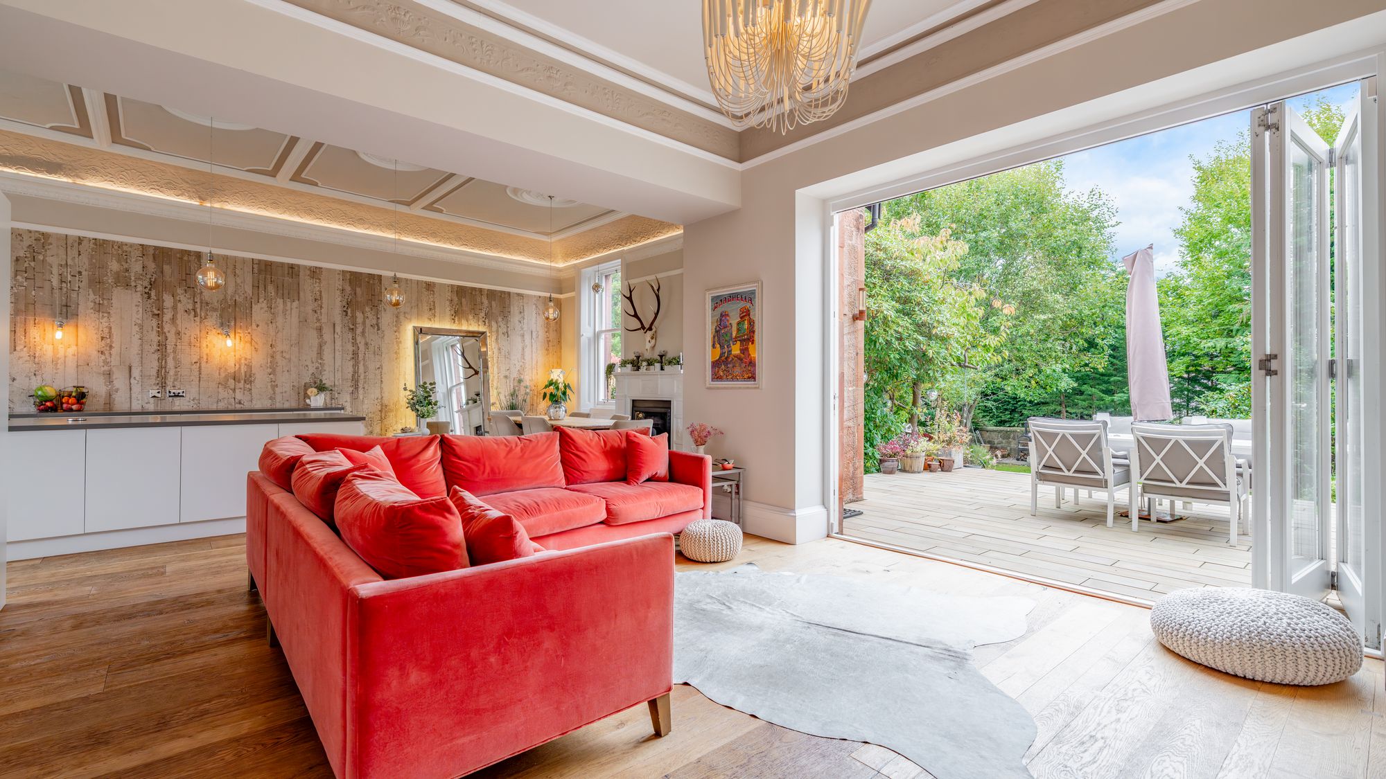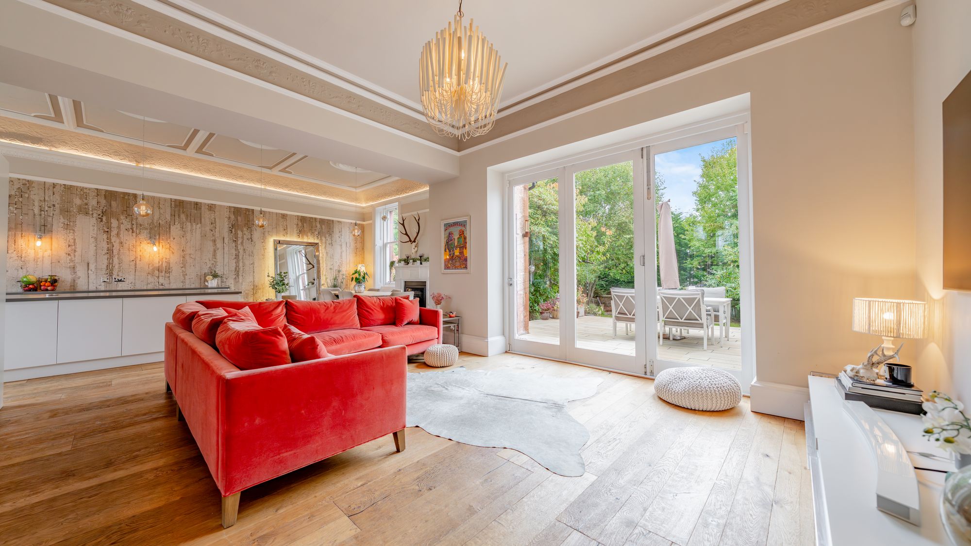 Ornate masonry frames the original storm door which opens in to the entrance vestibule with the number ‘16’ adorned in stained glass above. The quality and care taken in restoring this property is abundantly clear as you are met with intricate ceiling cornice and the original balustrade wrapping around the staircase leading to the upper level. The ground floor accommodation comprises of a large, bay windowed lounge with log burning stove, a similarly sized and equally impressive dining room with double doors opening in to the stunning ‘heart of the home’ - the open plan kitchen/dining/sitting room which boasts bi folding doors opening in to the rear garden accompanied by an abundance of natural light from an array of large windows and a stunning fitted kitchen complete with a large central island, state of the art integrated appliances and extensive work top space.