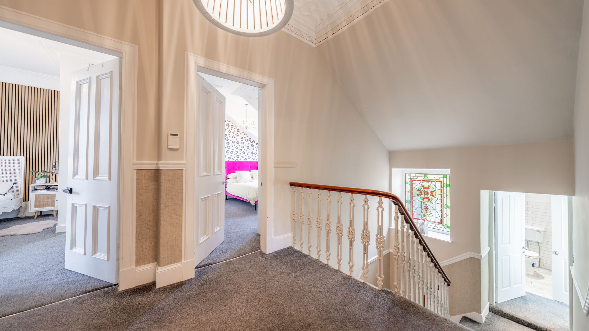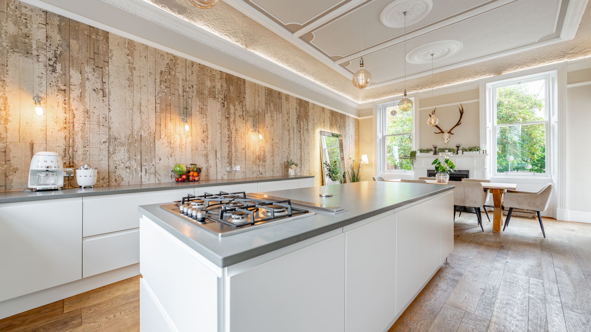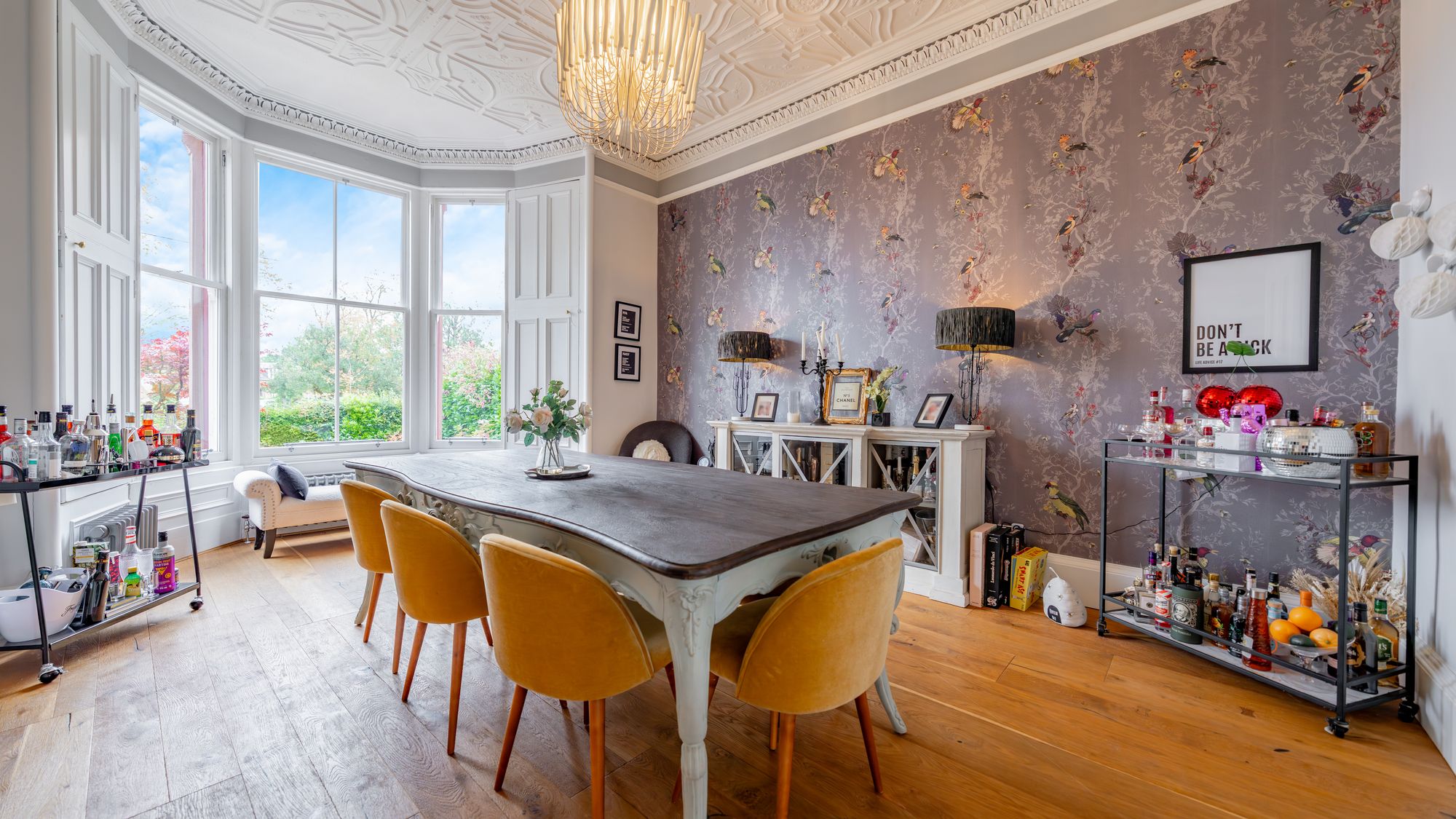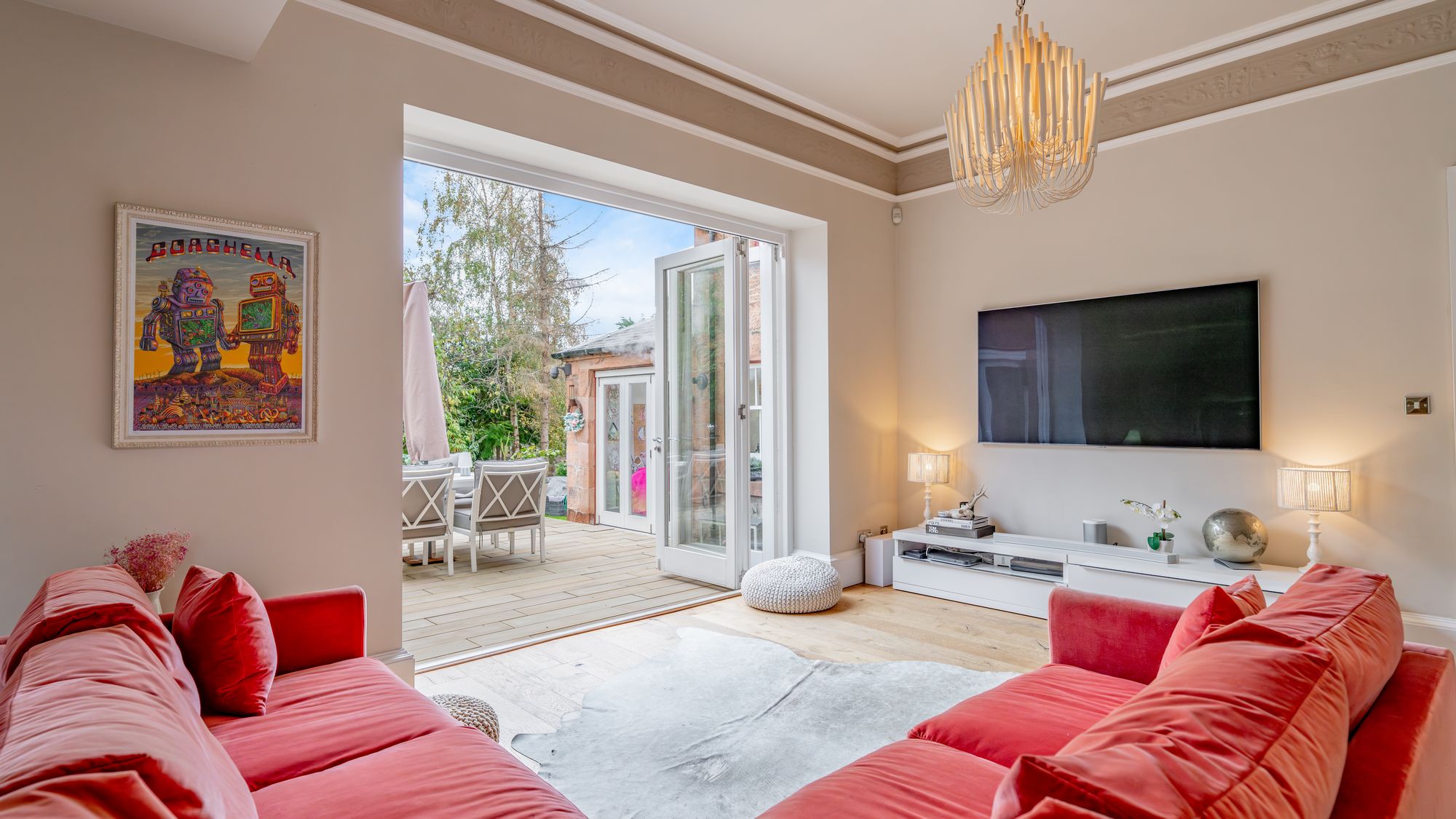 Ornate masonry frames the original storm door which opens in to the entrance vestibule with the number ‘16’ adorned in stained glass above. The quality and care taken in restoring this property is abundantly clear as you are met with intricate ceiling cornice and the original balustrade wrapping around the staircase leading to the upper level. The ground floor accommodation comprises of a large, bay windowed lounge with log burning stove, a similarly sized and equally impressive dining room with double doors opening in to the stunning ‘heart of the home’ - the open plan kitchen/dining/sitting room which boasts bi folding doors opening in to the rear garden accompanied by an abundance of natural light from an array of large windows and a stunning fitted kitchen complete with a large central island, state of the art integrated appliances and extensive work top space.