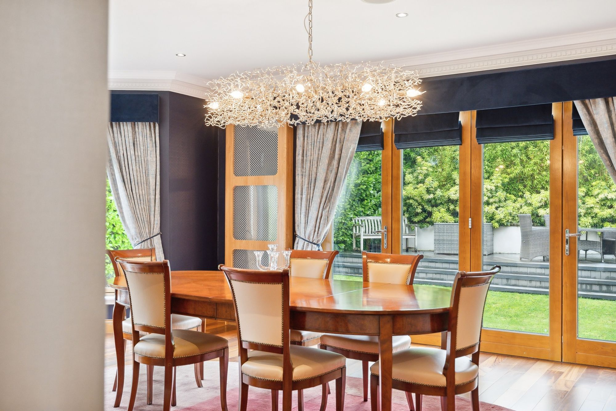 An exceptional detached home providing flexible family accommodation of ten principal apartments, all set behind electric gates within private corner gardens. This substantial home was built to a superb specification in 2009 and extends to approx 7000 sq ft over three levels and provides spacious and adaptable family accommodation.