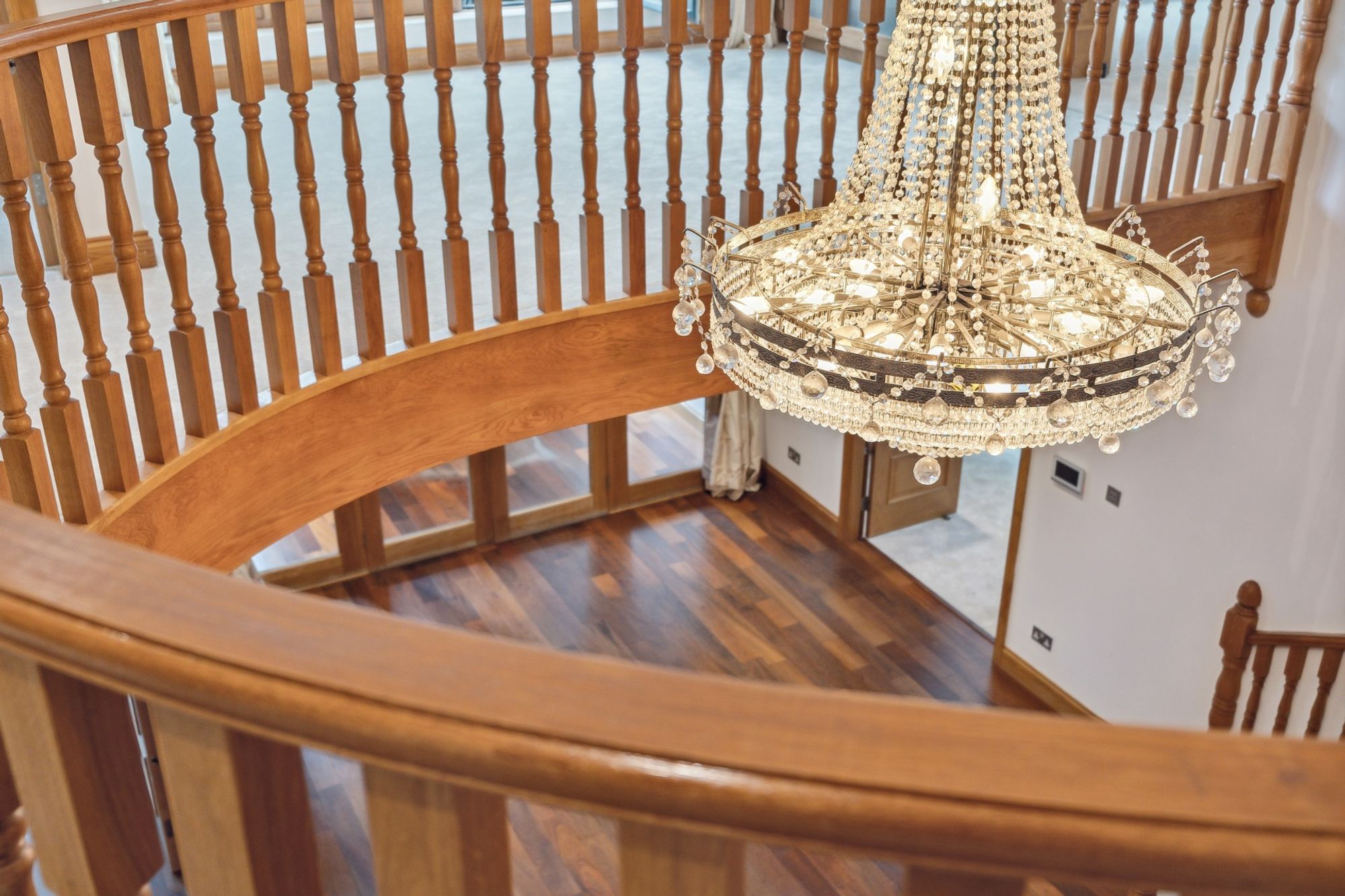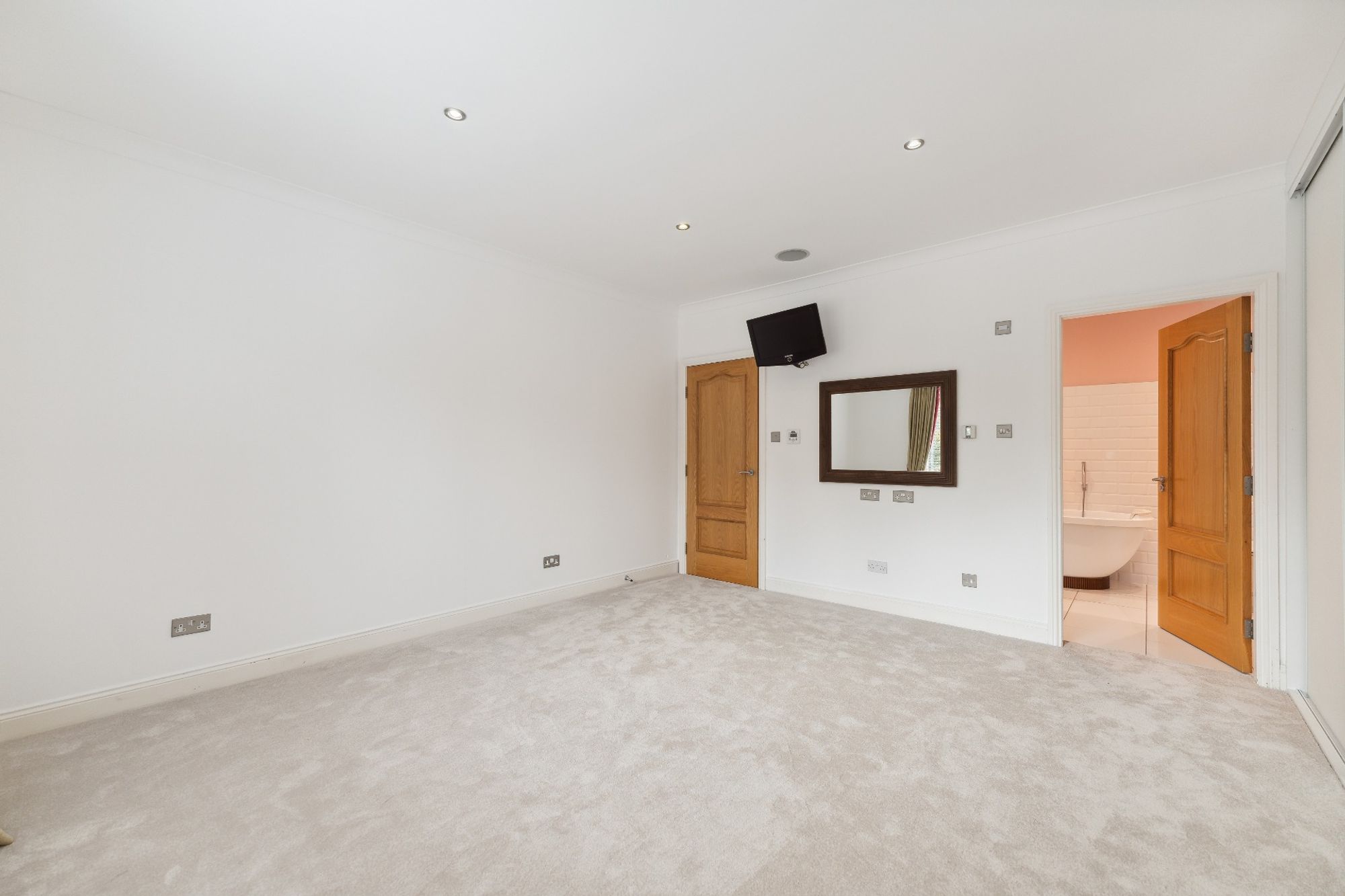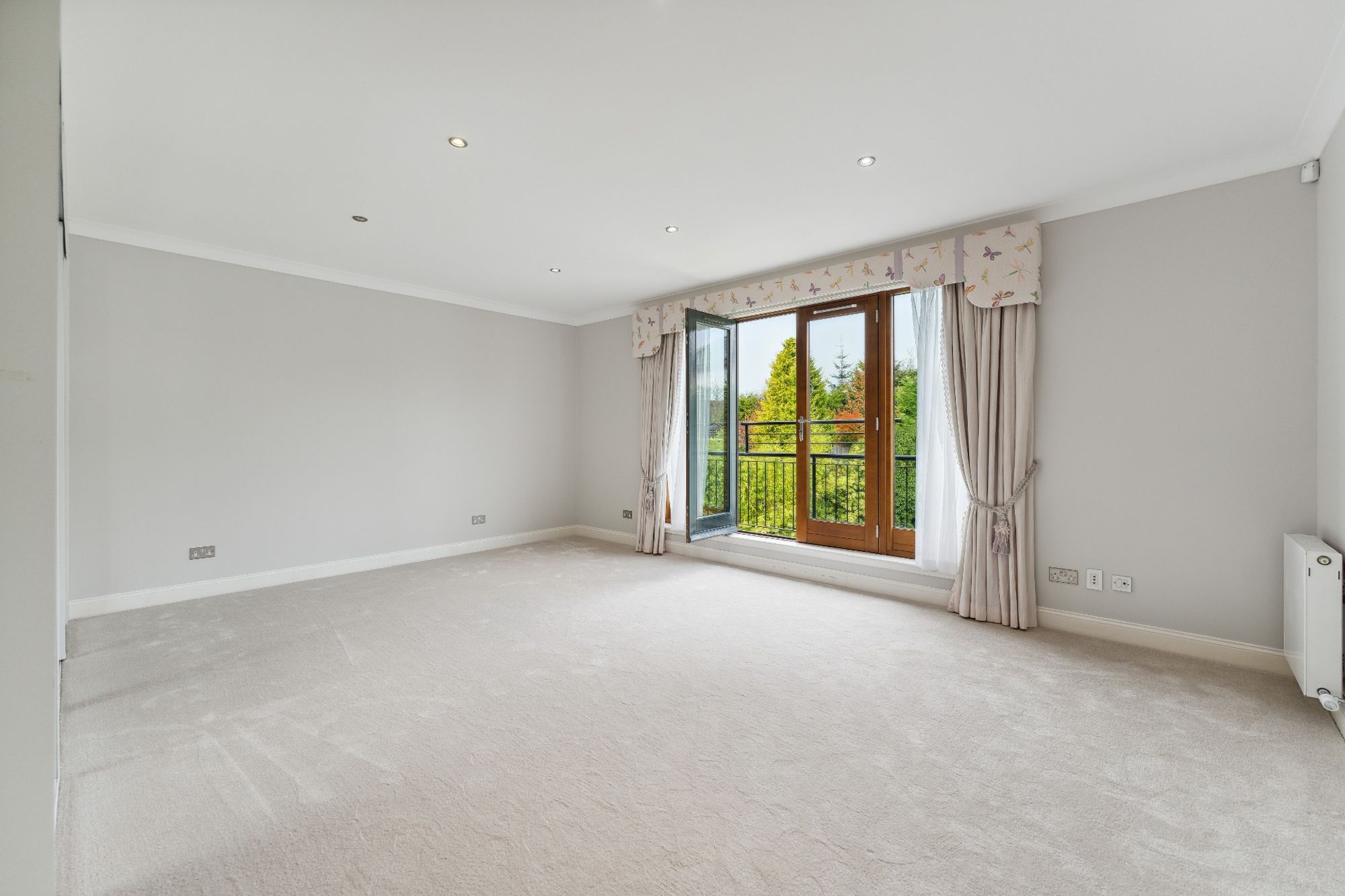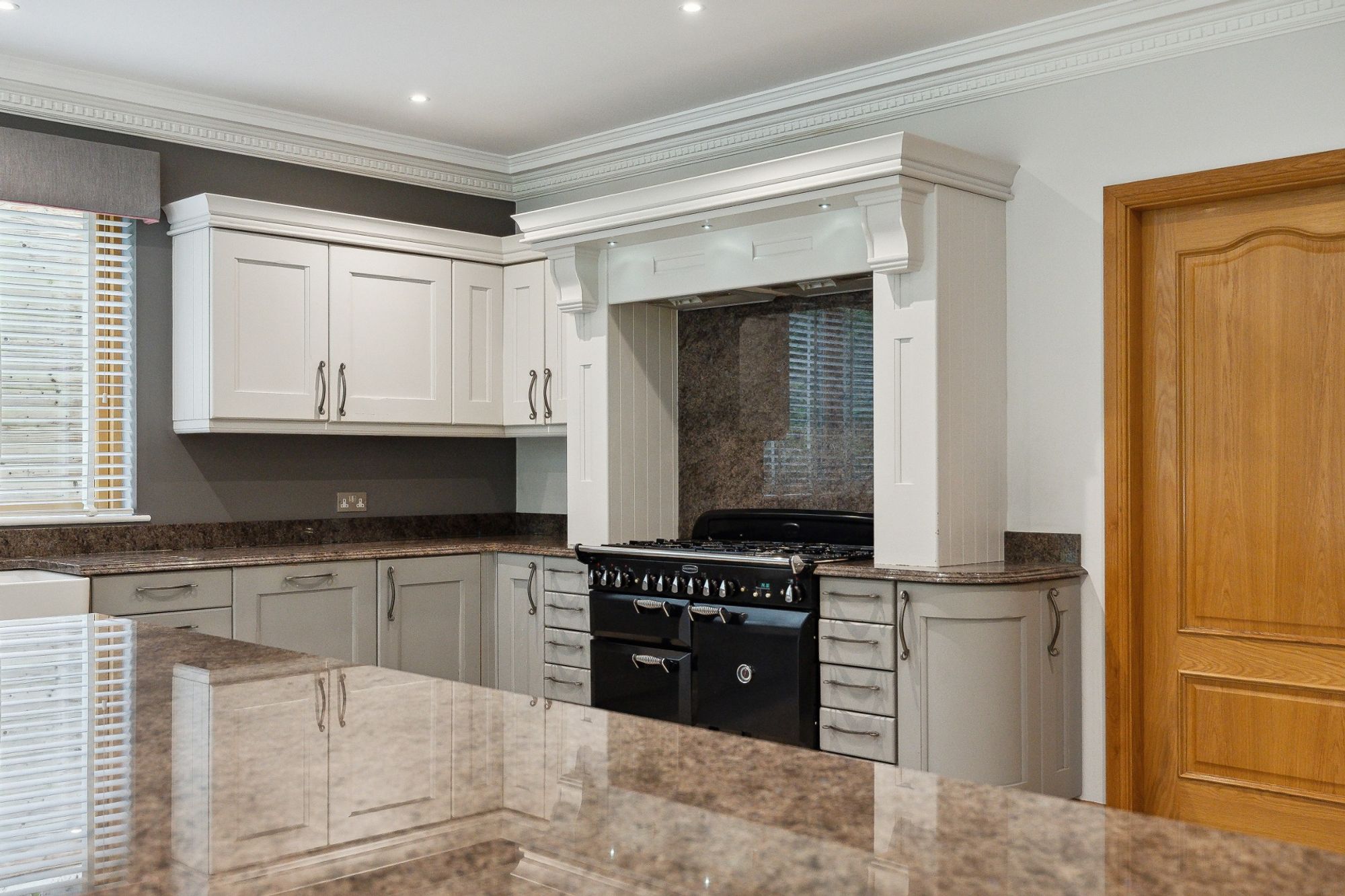 The house is entered through electric wrought iron gates with a high boundary wall and conifers screening the entire grounds. A monoblock driveway gives access to the extensive three car garage, providing ample secure parking and gives access to the entrance vestibule.