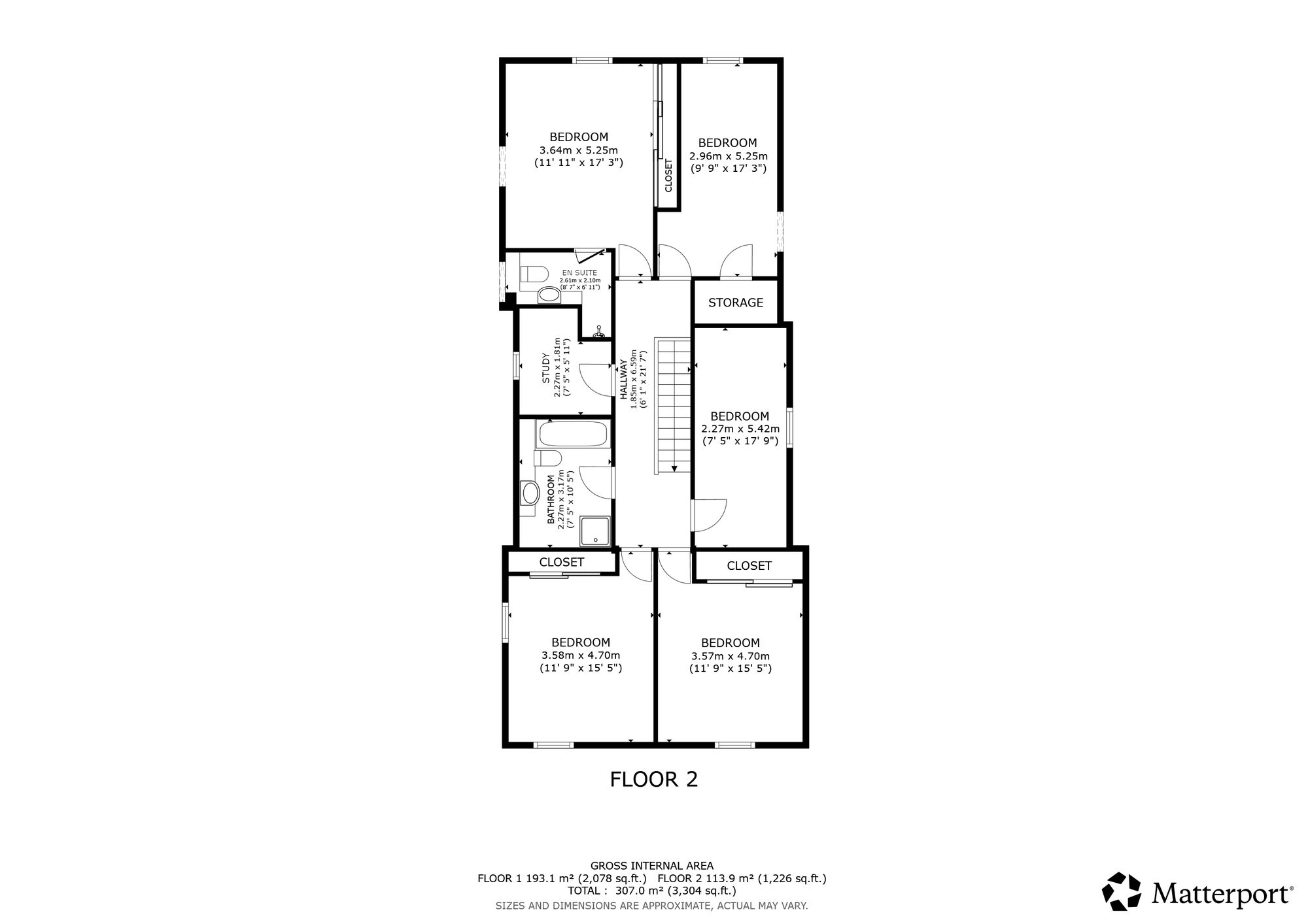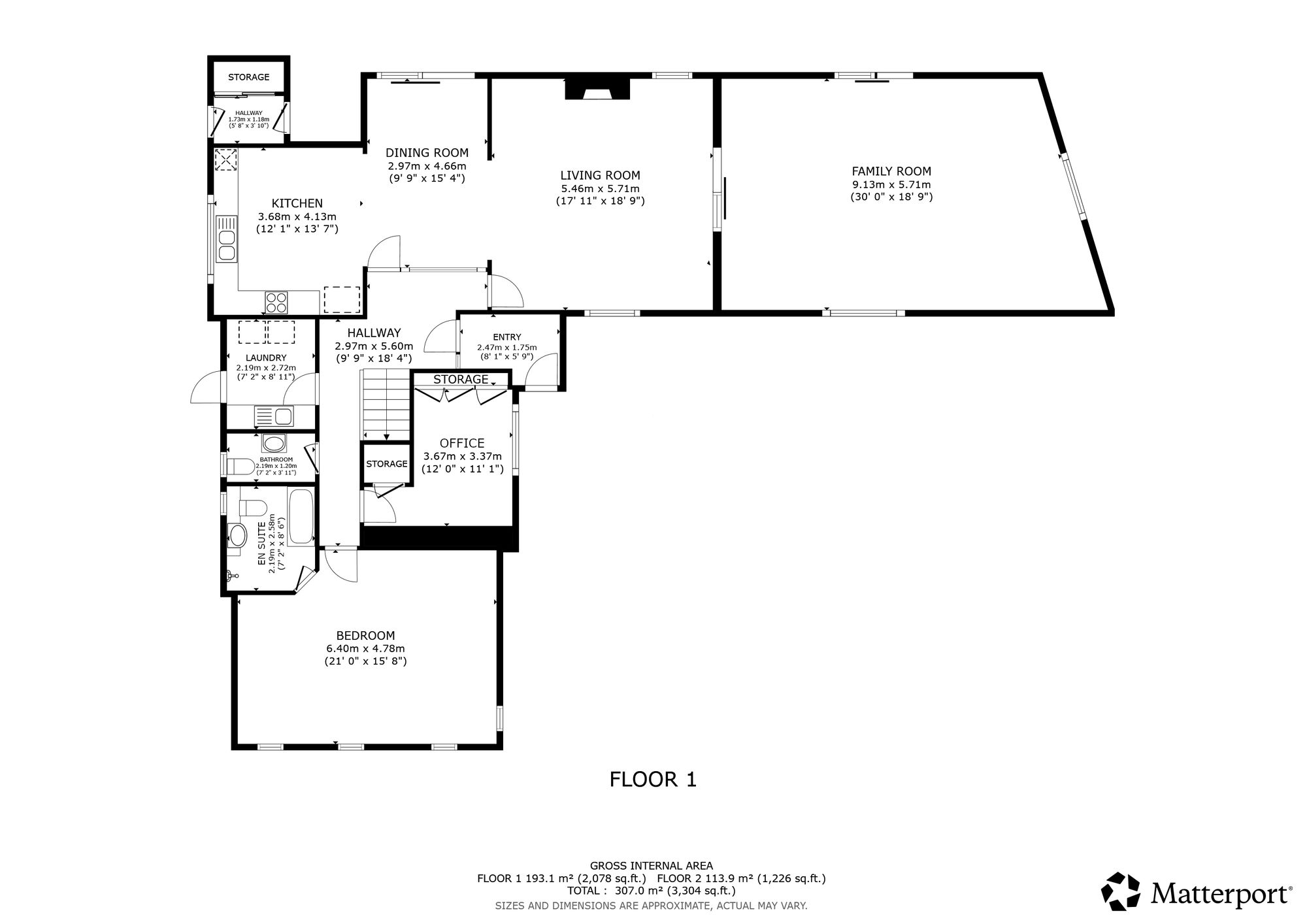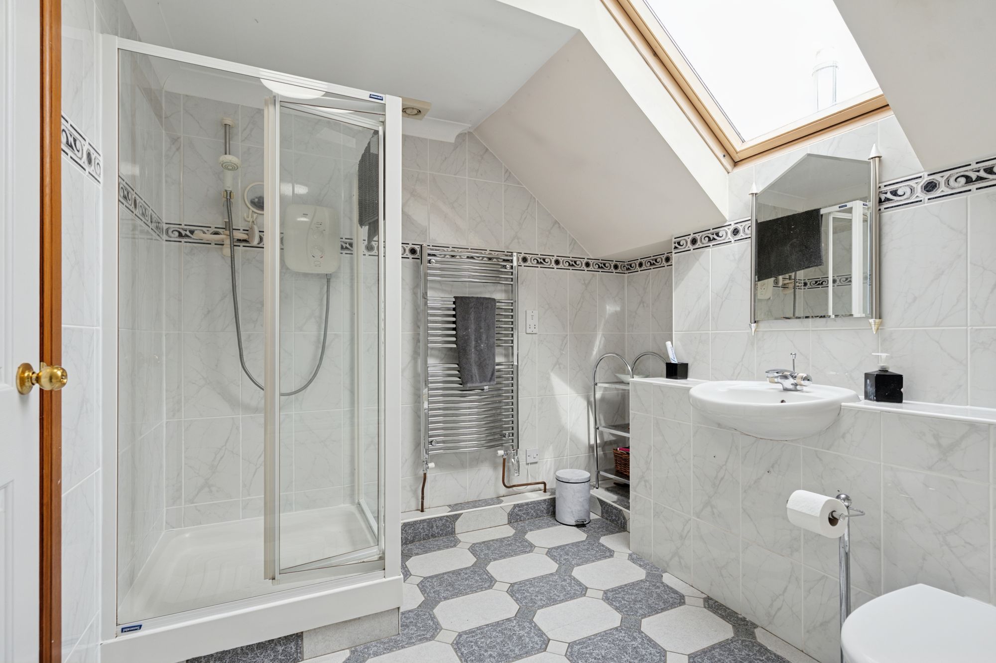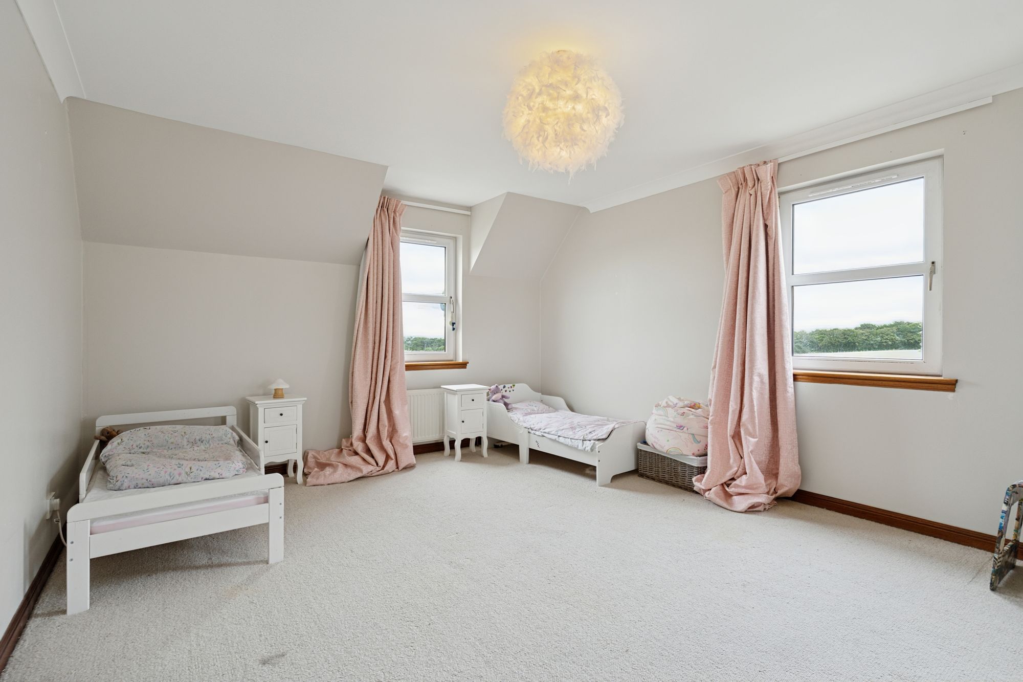 Stairs from the hall lead up to the first floor and the additional bedrooms. There are 3 spacious double bedrooms with built in wardrobe spaces, with one having the benefit of an en-suite shower room with basin and WC. There are 2 further bedrooms which also offer versatility as playrooms or home office. There is an additional storage room which could be used as a home office and there is family bathroom with bath, separate shower cubicle, toilet and basin.