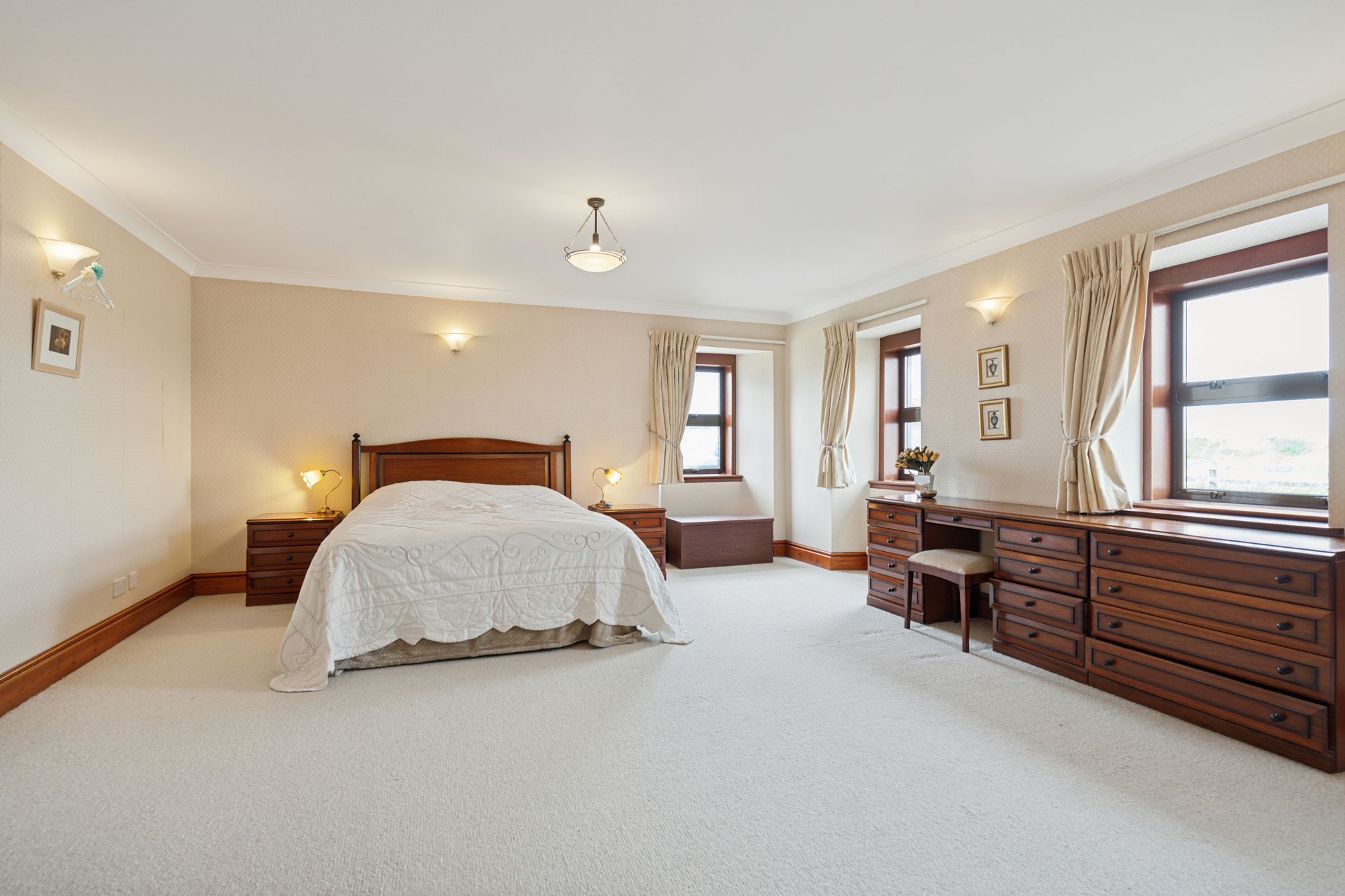 Completing the lower level is the utility room, separate WC, storage or study room and large double bedroom with en-suite bathroom with wash basin and toilet, neatly contained in the original cottage building.