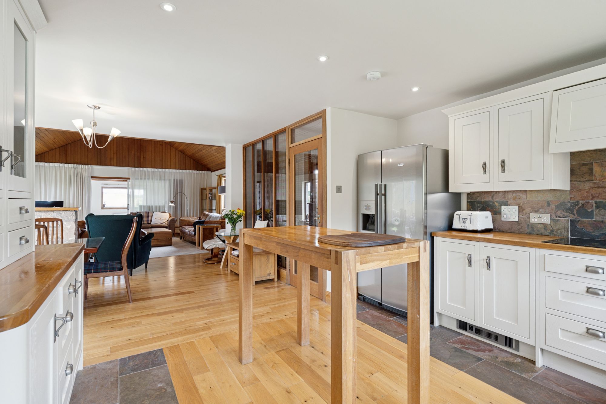 The property is entered via private driveway leading to internal hallway. This opens up to the large well equipped, cottage style kitchen, keeping in line with the original building. The kitchen boasts a wide range of unit and integrated oven, microwave, induction hob, extractor hood and dishwasher. There is a dining area and spacious, light living area off the kitchen area. This then leads to the feature, bright and spacious family room - an ideal space for entertaining.