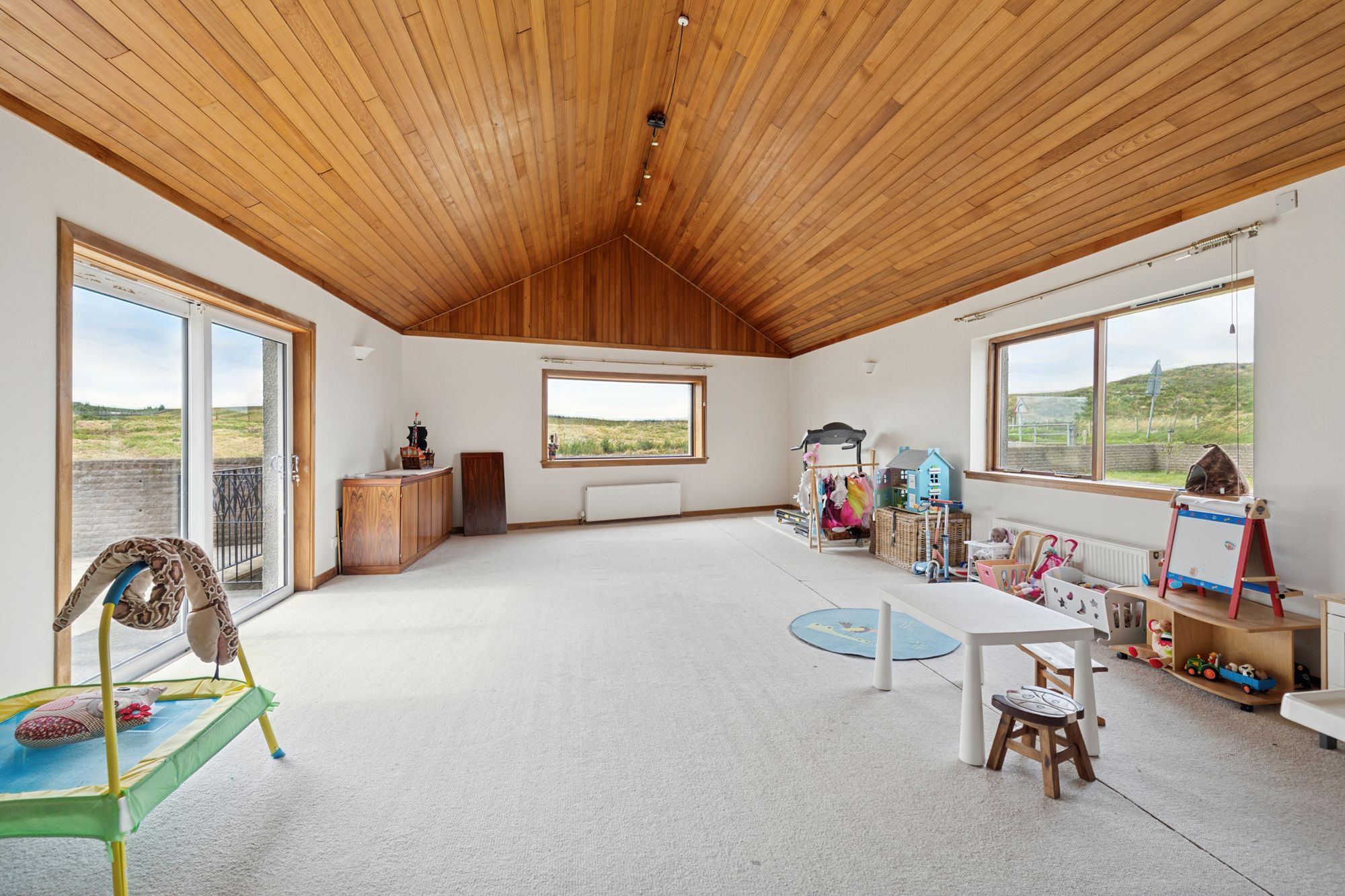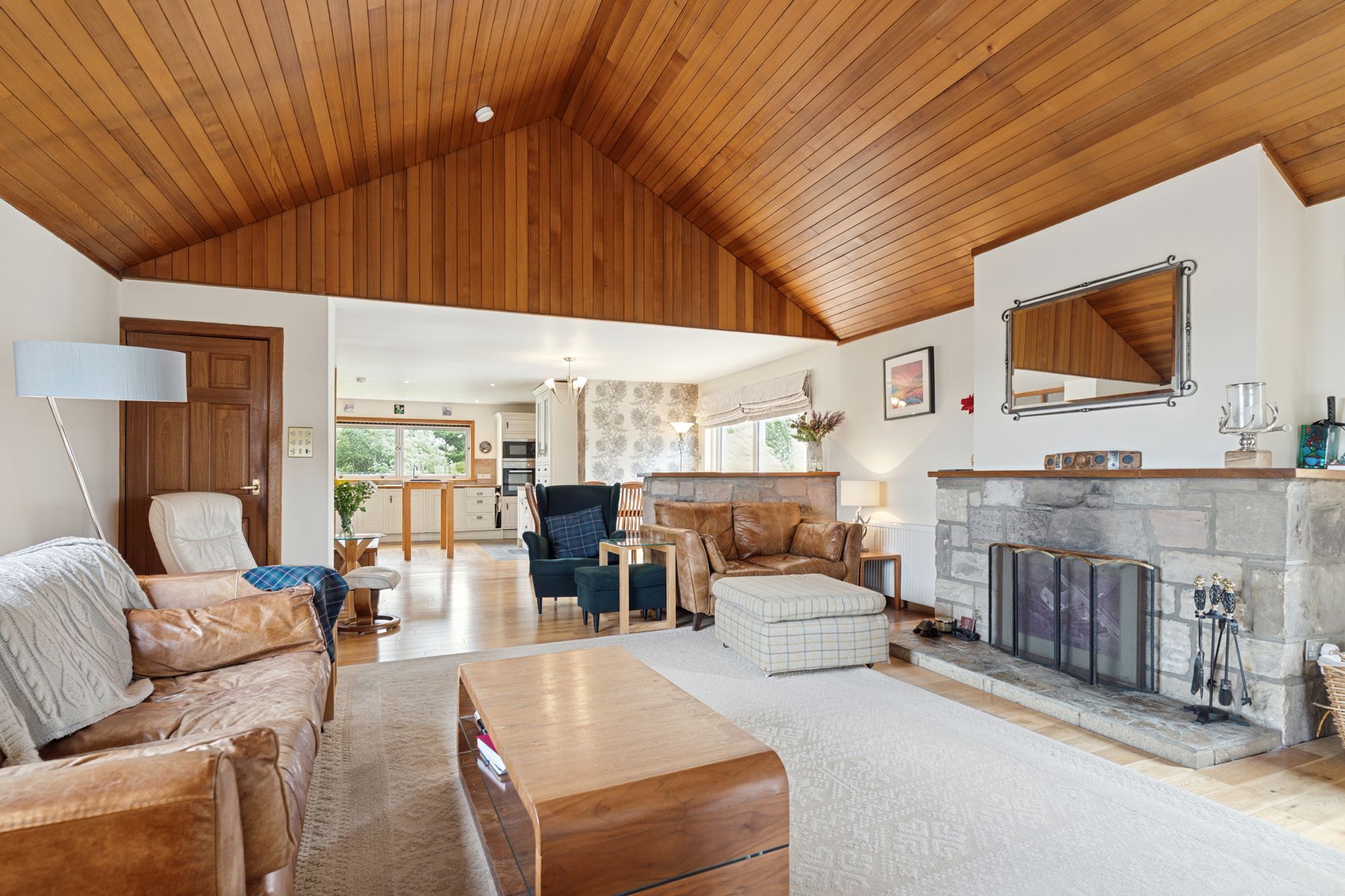 Externally, there is a detached double garage to the side of the property and enclosed gardens to the rear and low maintenance lawn to the front. There is also a large plot of land to the side of the property, measuring 1.1 acres.