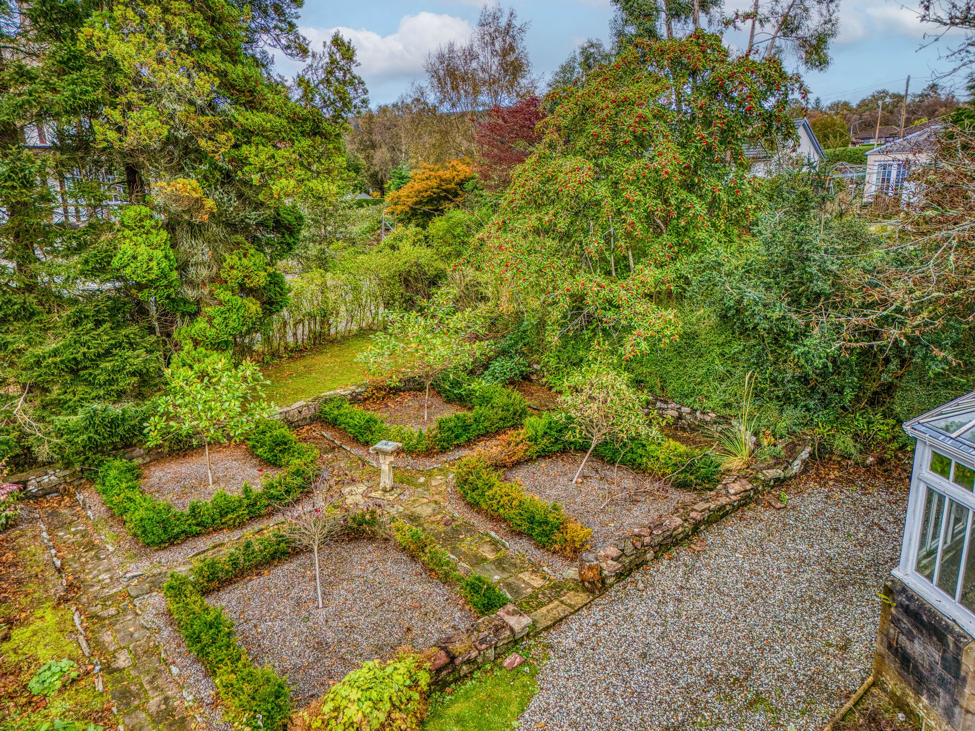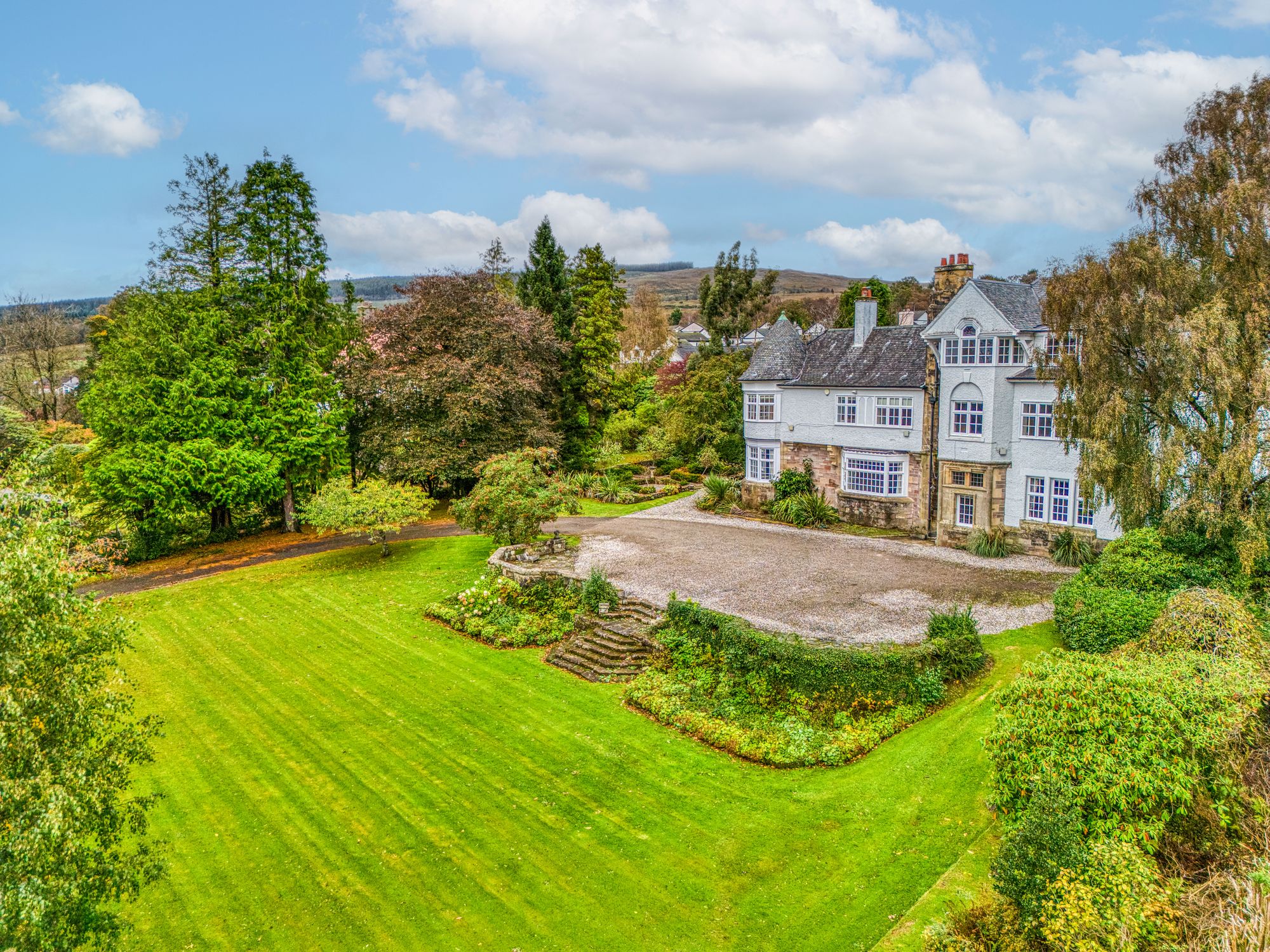 The property is set within expansive, mature gardens that provide a sense of privacy and grandeur rarely found in the area. A sweeping entrance driveway creates an impressive approach, leading to an extensive parking area fronting the house with large double garage to the side. Well-established lawns and landscaped grounds surround the house on all sides. Framed by a variety of specimen trees, flowering shrubs, and sheltered seating areas, the garden offers both beauty and seclusion, making it ideal for family life, outdoor entertaining, or simply enjoying the peace of this exceptional setting. The scale and setting of the grounds perfectly complement the architectural significance of the house, further enhancing its status as one of Helensburgh’s landmark residences.