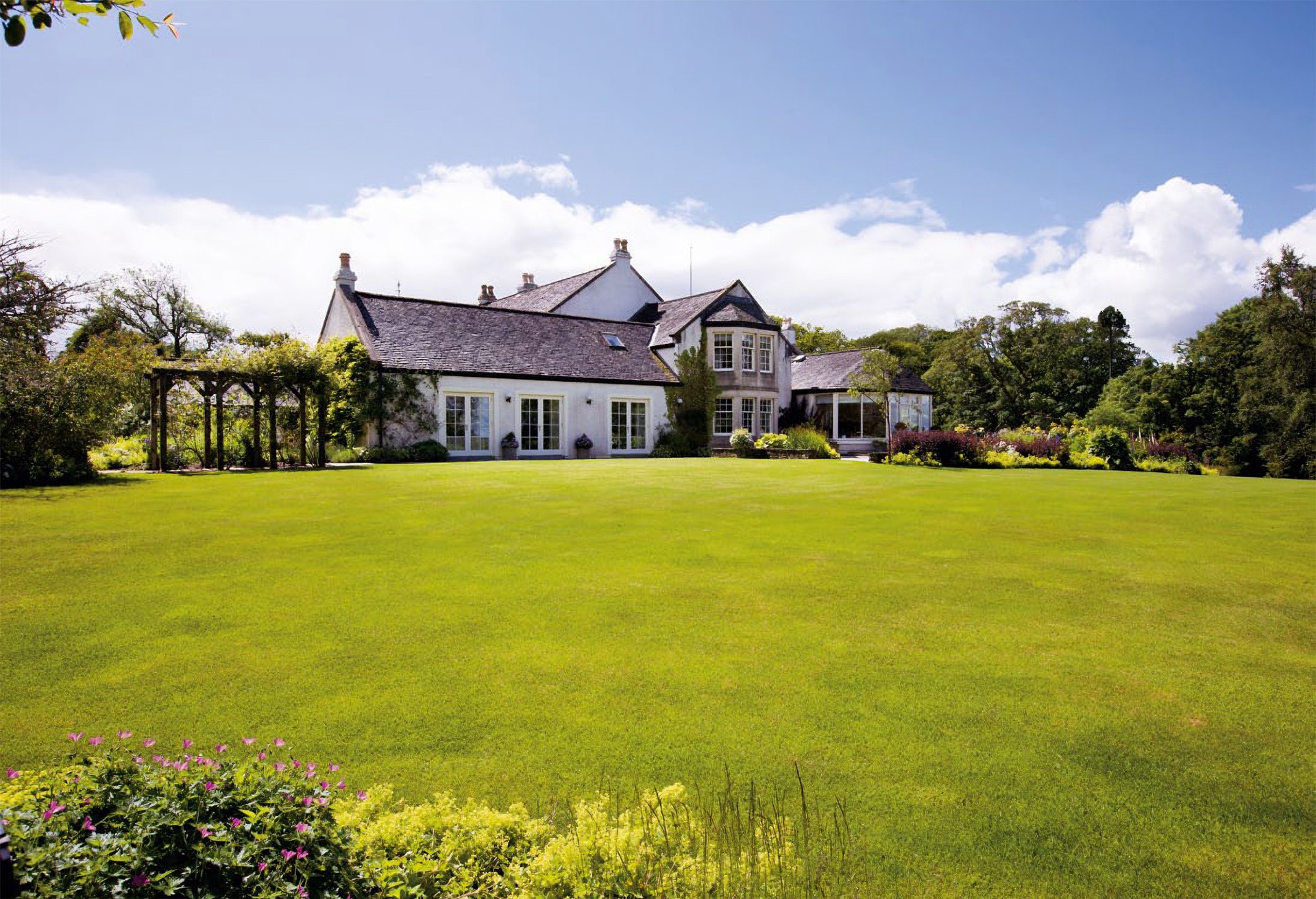 A magnificent rural family home on the outskirts of Glasgow City, set amidst 18 acres of formal gardens and grounds, lying adjacent to Balgray reservoir.